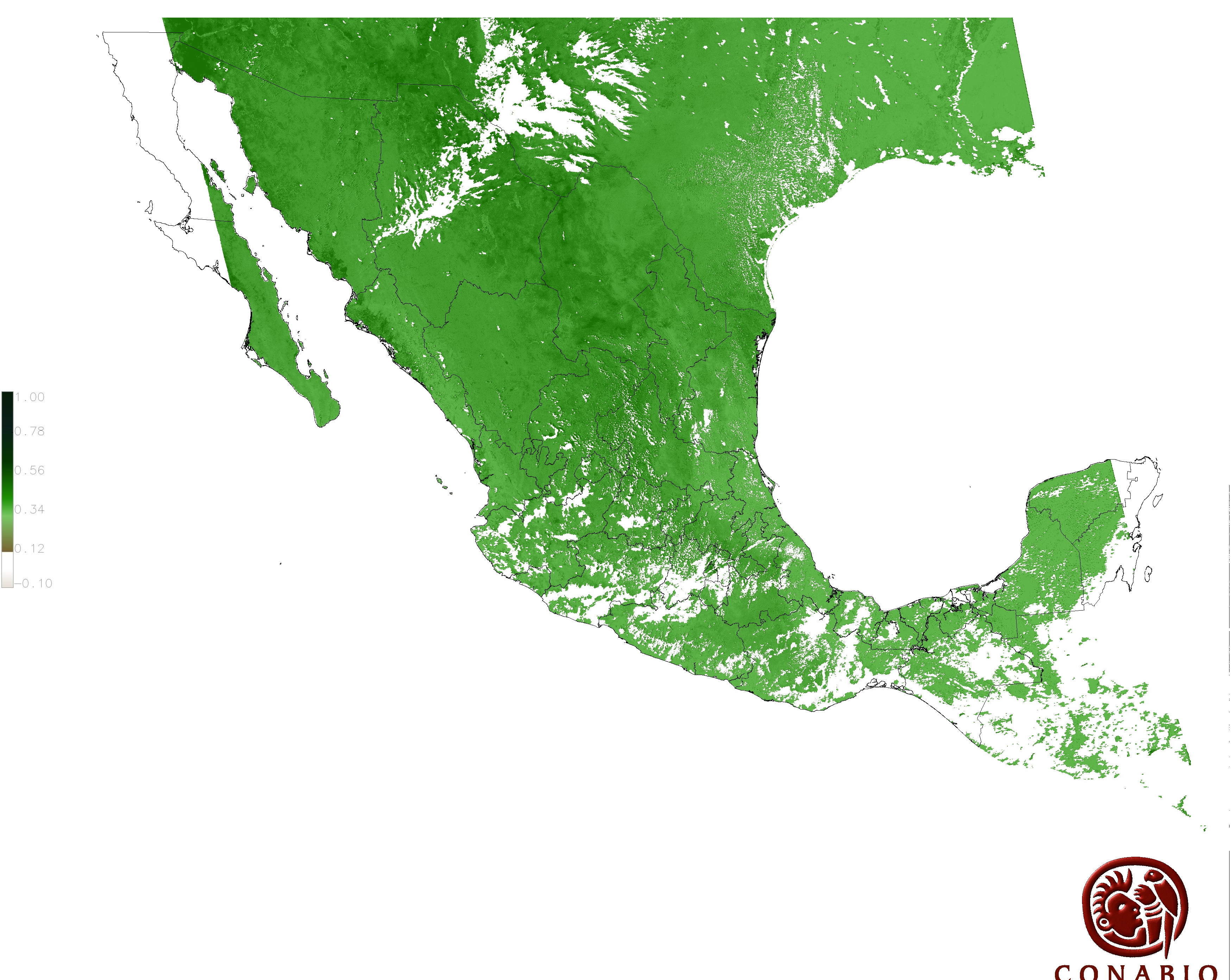 Los valores del índice van de -1 a 1, entre más cercano al valor 1 la vegetación presenta mayor vigor. Los índices de vegetación son utilizados para conocer el comportamiento de la vegetación tanto espacial como temporal. |