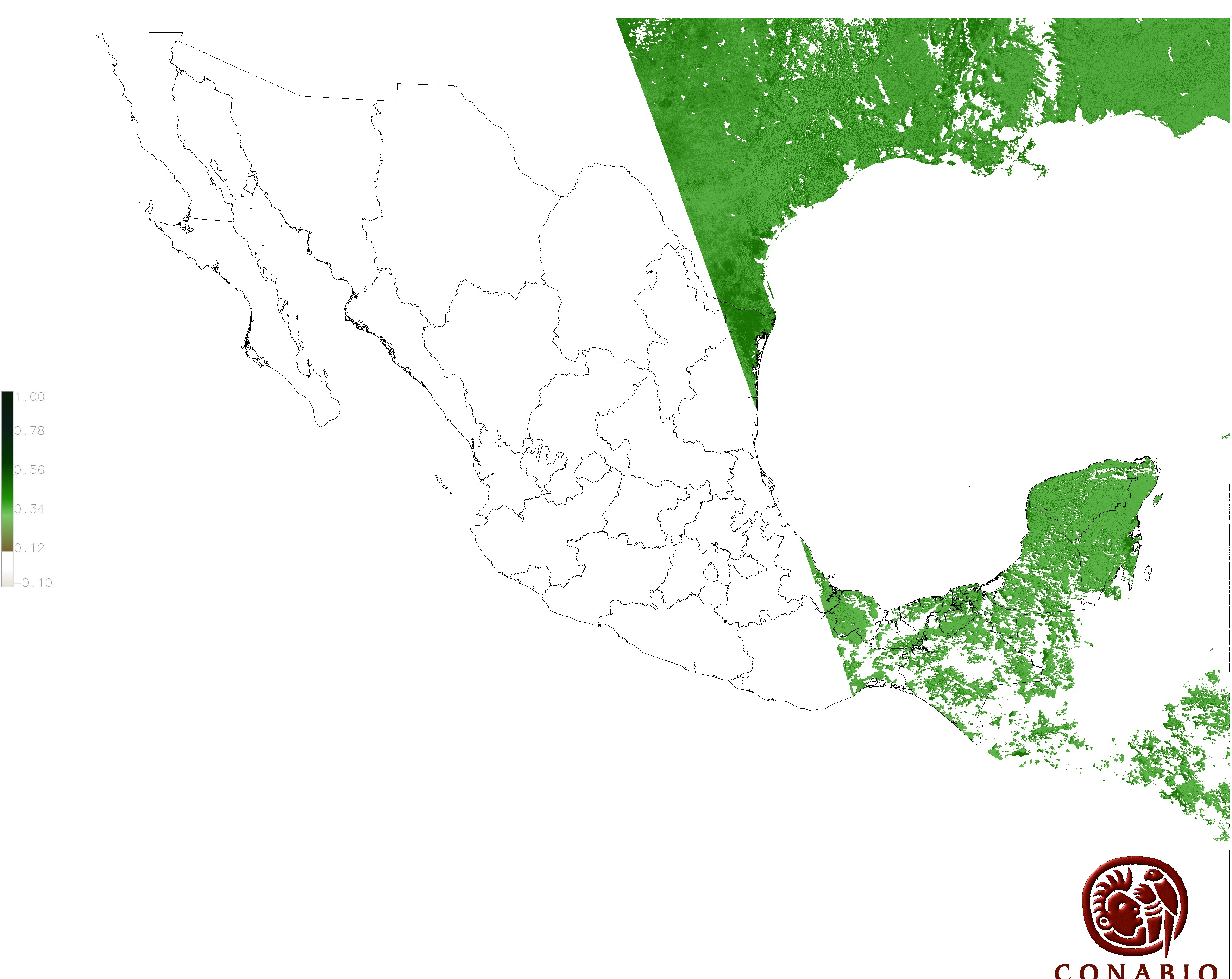 Los valores del índice van de -1 a 1, entre más cercano al valor 1 la vegetación presenta mayor vigor. Los índices de vegetación son utilizados para conocer el comportamiento de la vegetación tanto espacial como temporal. |