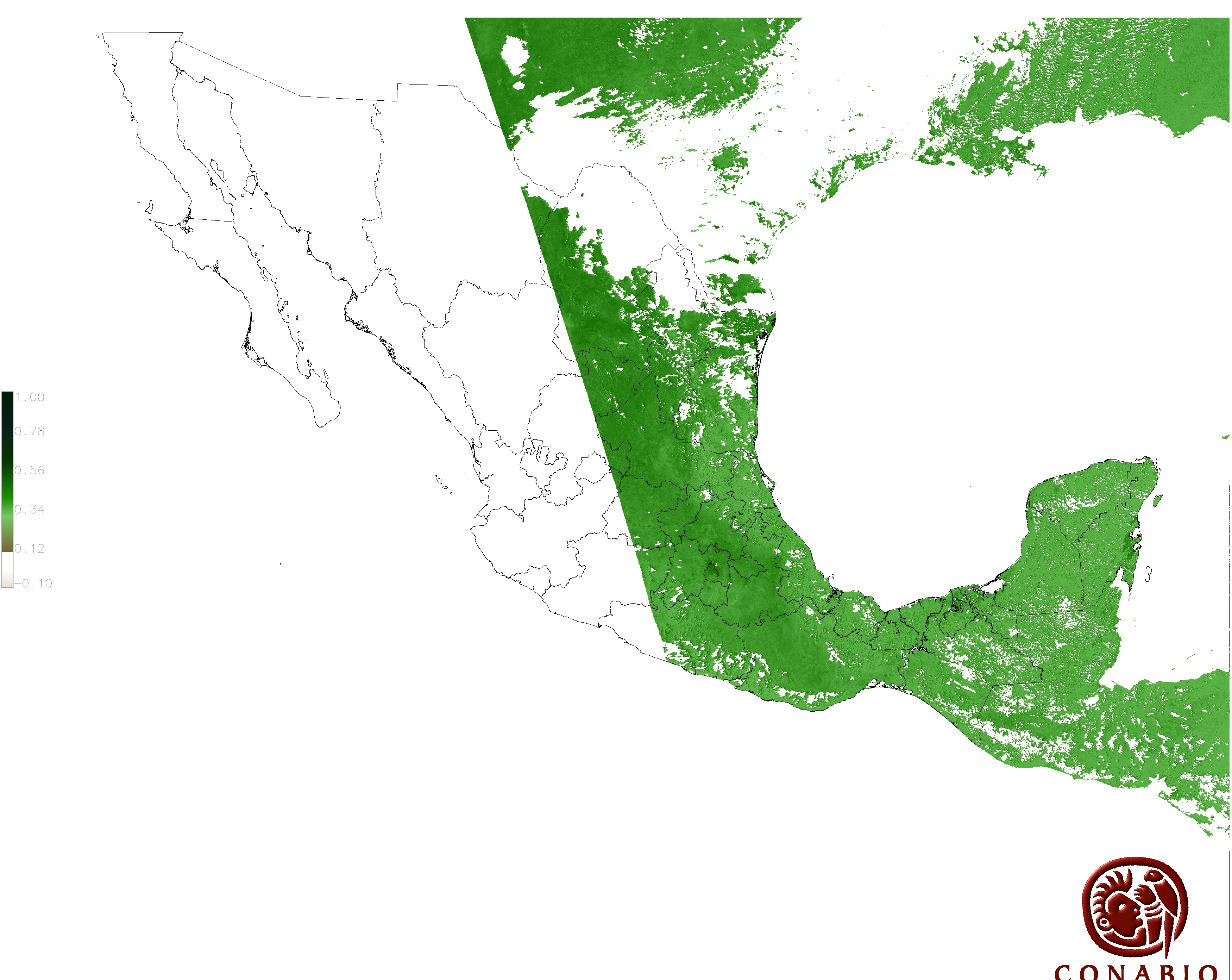 Los valores del índice van de -1 a 1, entre más cercano al valor 1 la vegetación presenta mayor vigor. Los índices de vegetación son utilizados para conocer el comportamiento de la vegetación tanto espacial como temporal. |