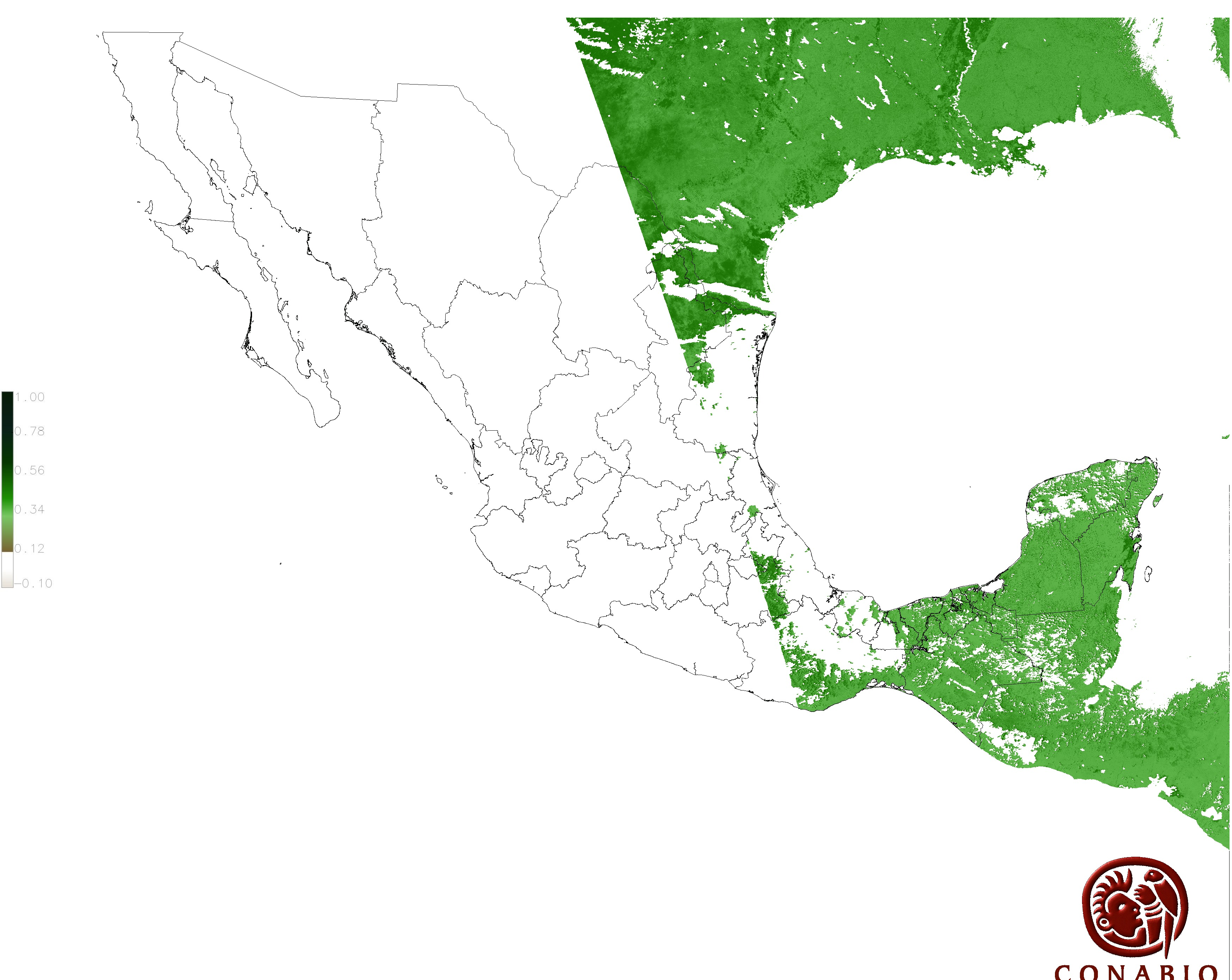 Los valores del índice van de -1 a 1, entre más cercano al valor 1 la vegetación presenta mayor vigor. Los índices de vegetación son utilizados para conocer el comportamiento de la vegetación tanto espacial como temporal. |