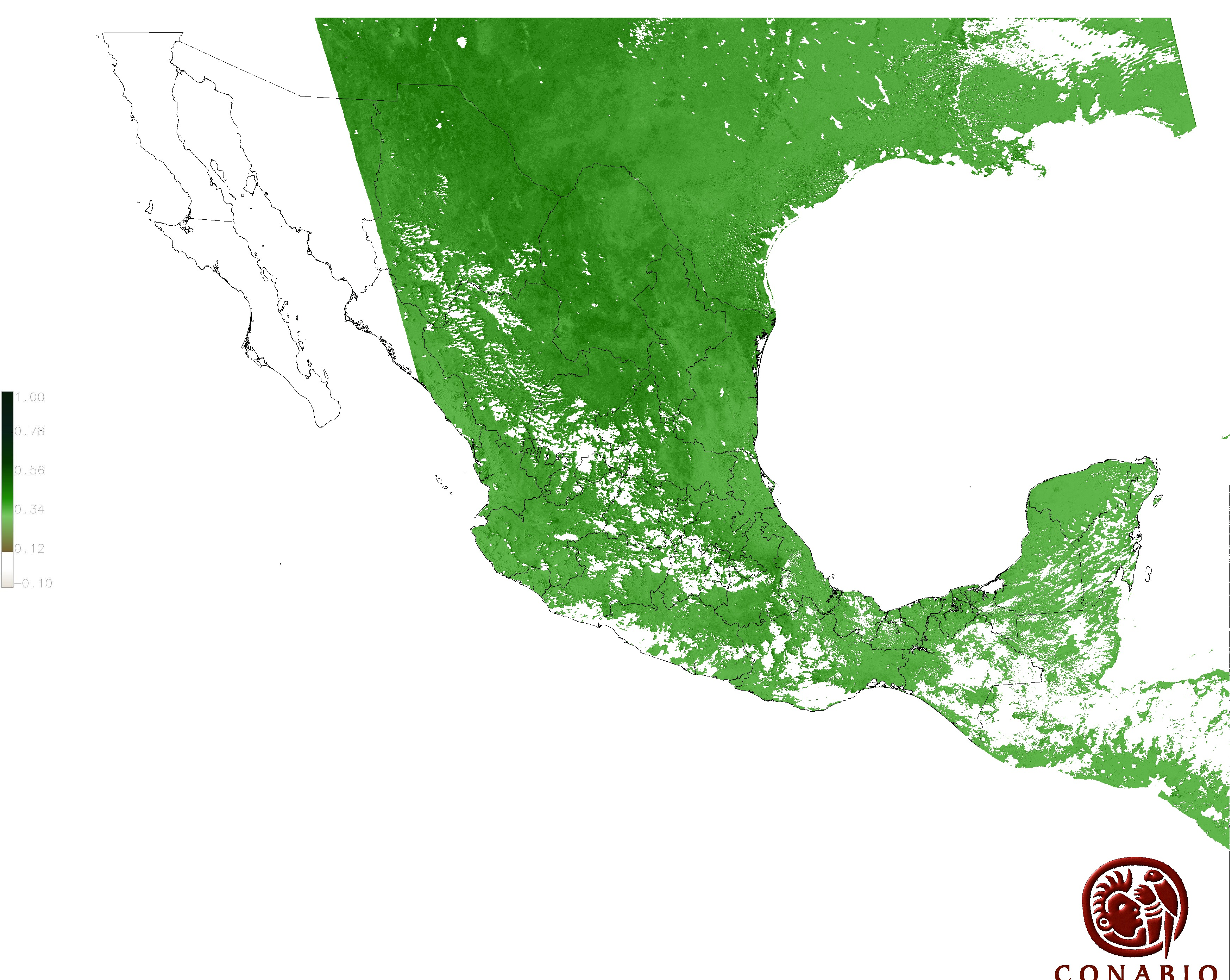 Los valores del índice van de -1 a 1, entre más cercano al valor 1 la vegetación presenta mayor vigor. Los índices de vegetación son utilizados para conocer el comportamiento de la vegetación tanto espacial como temporal. |