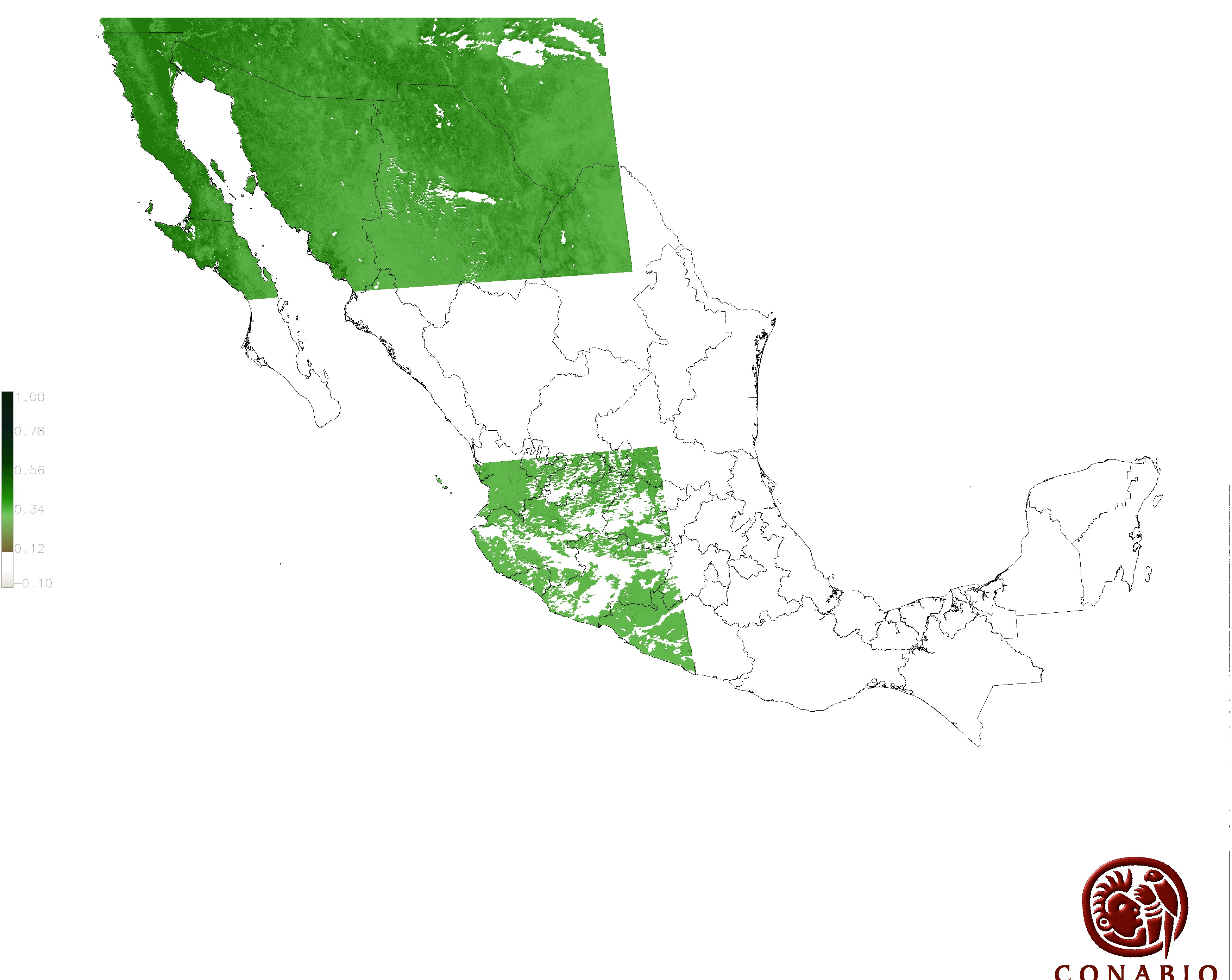 Los valores del índice van de -1 a 1, entre más cercano al valor 1 la vegetación presenta mayor vigor. Los índices de vegetación son utilizados para conocer el comportamiento de la vegetación tanto espacial como temporal. |