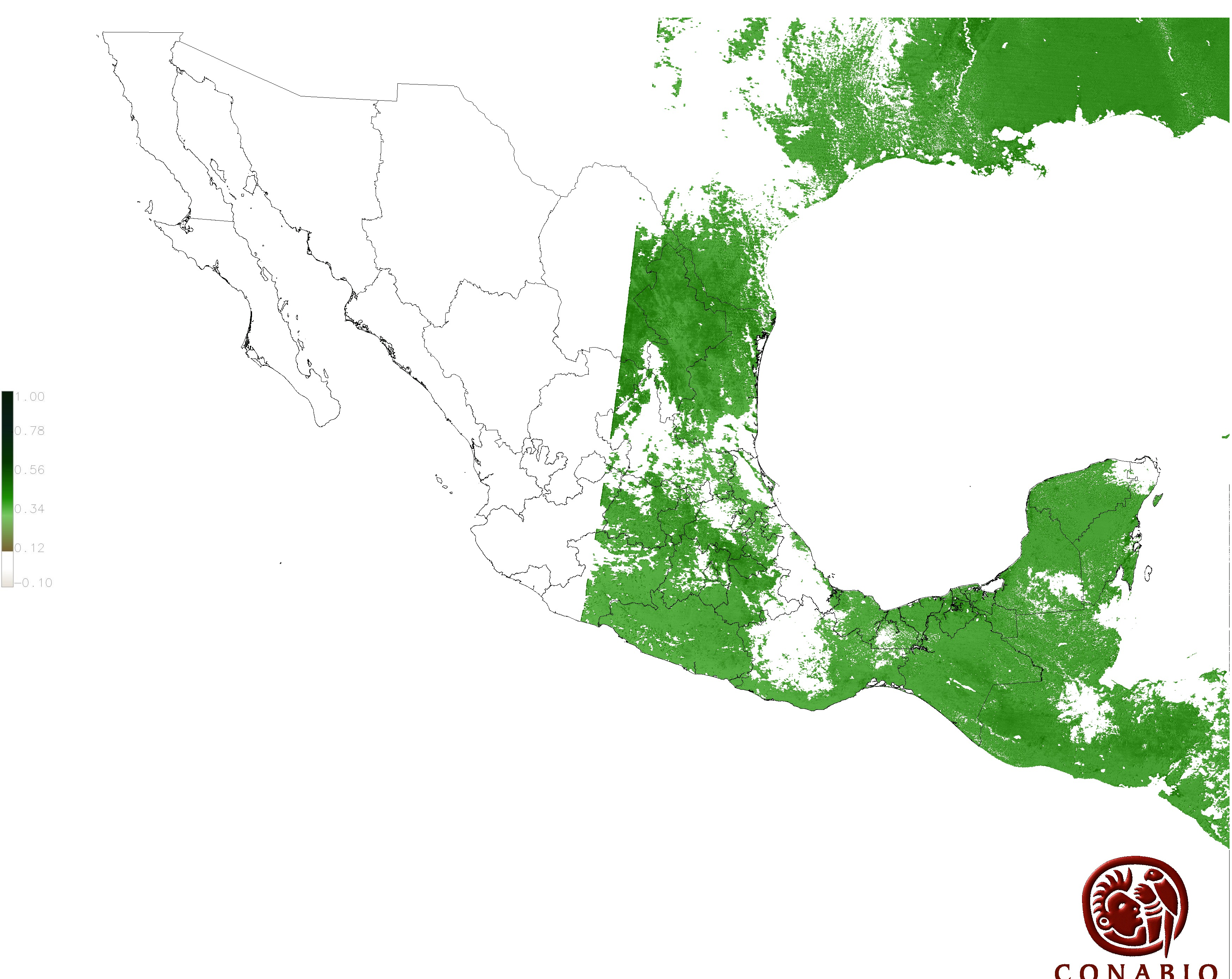 Los valores del índice van de -1 a 1, entre más cercano al valor 1 la vegetación presenta mayor vigor. Los índices de vegetación son utilizados para conocer el comportamiento de la vegetación tanto espacial como temporal. |