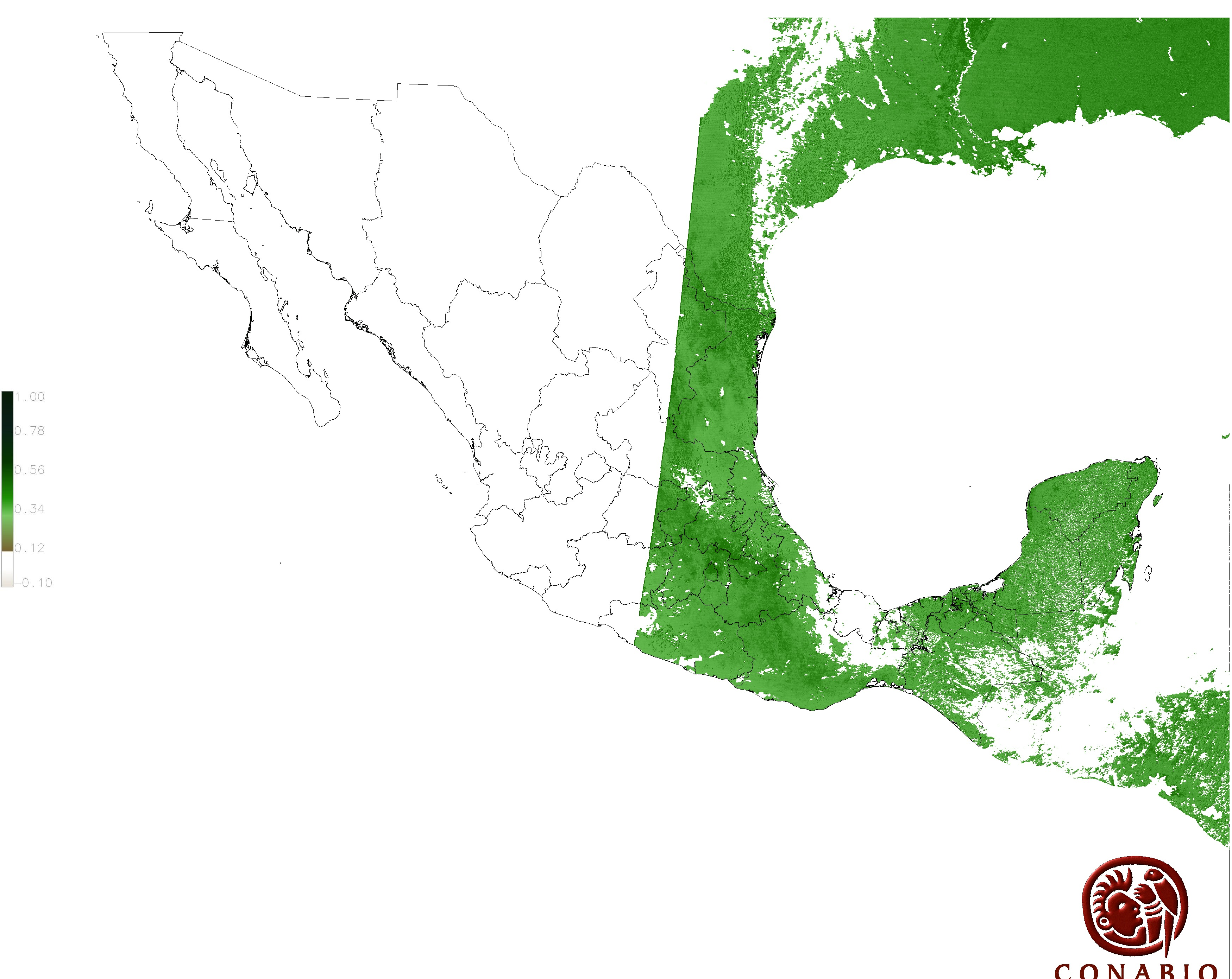 Los valores del índice van de -1 a 1, entre más cercano al valor 1 la vegetación presenta mayor vigor. Los índices de vegetación son utilizados para conocer el comportamiento de la vegetación tanto espacial como temporal. |