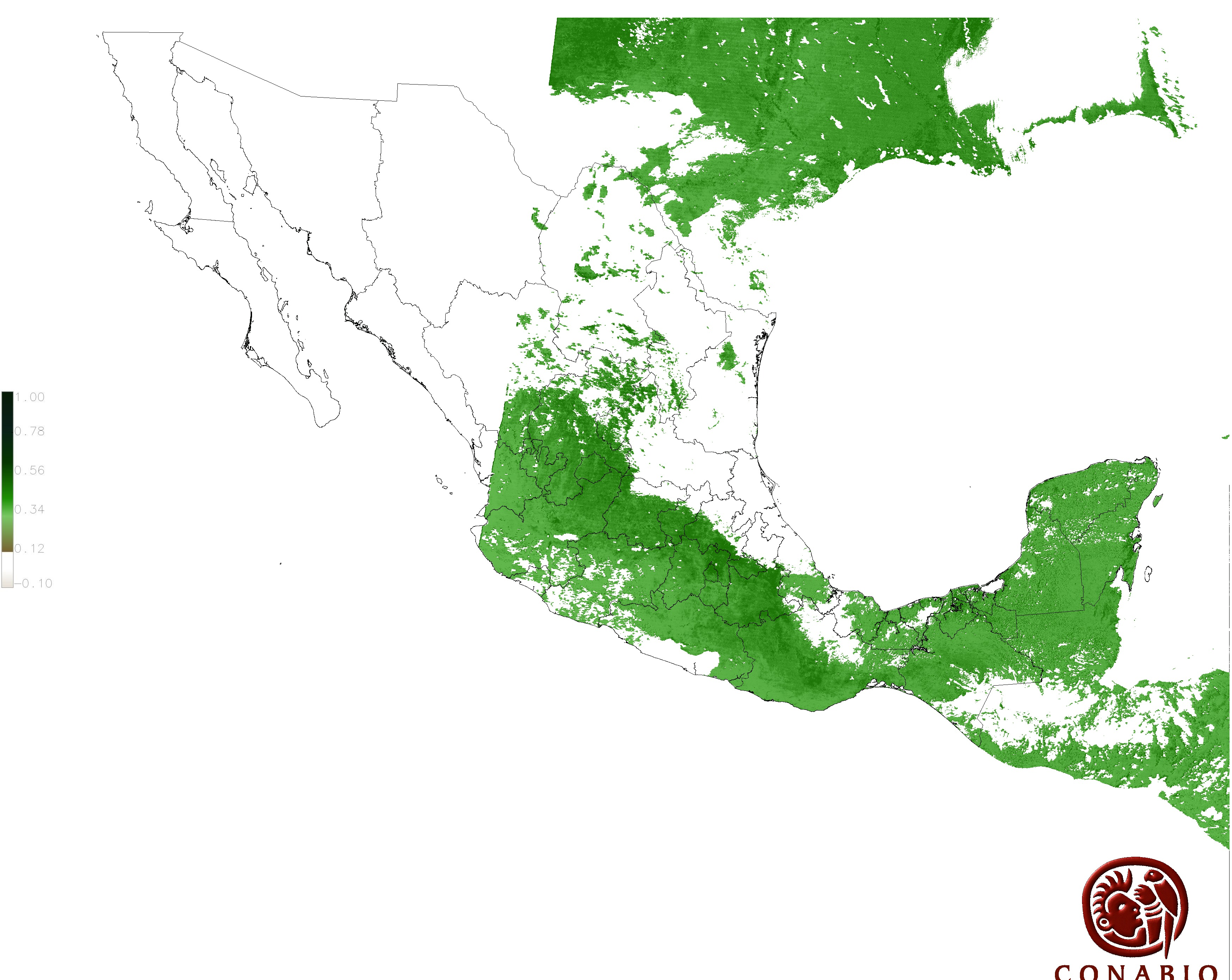 Los valores del índice van de -1 a 1, entre más cercano al valor 1 la vegetación presenta mayor vigor. Los índices de vegetación son utilizados para conocer el comportamiento de la vegetación tanto espacial como temporal. |