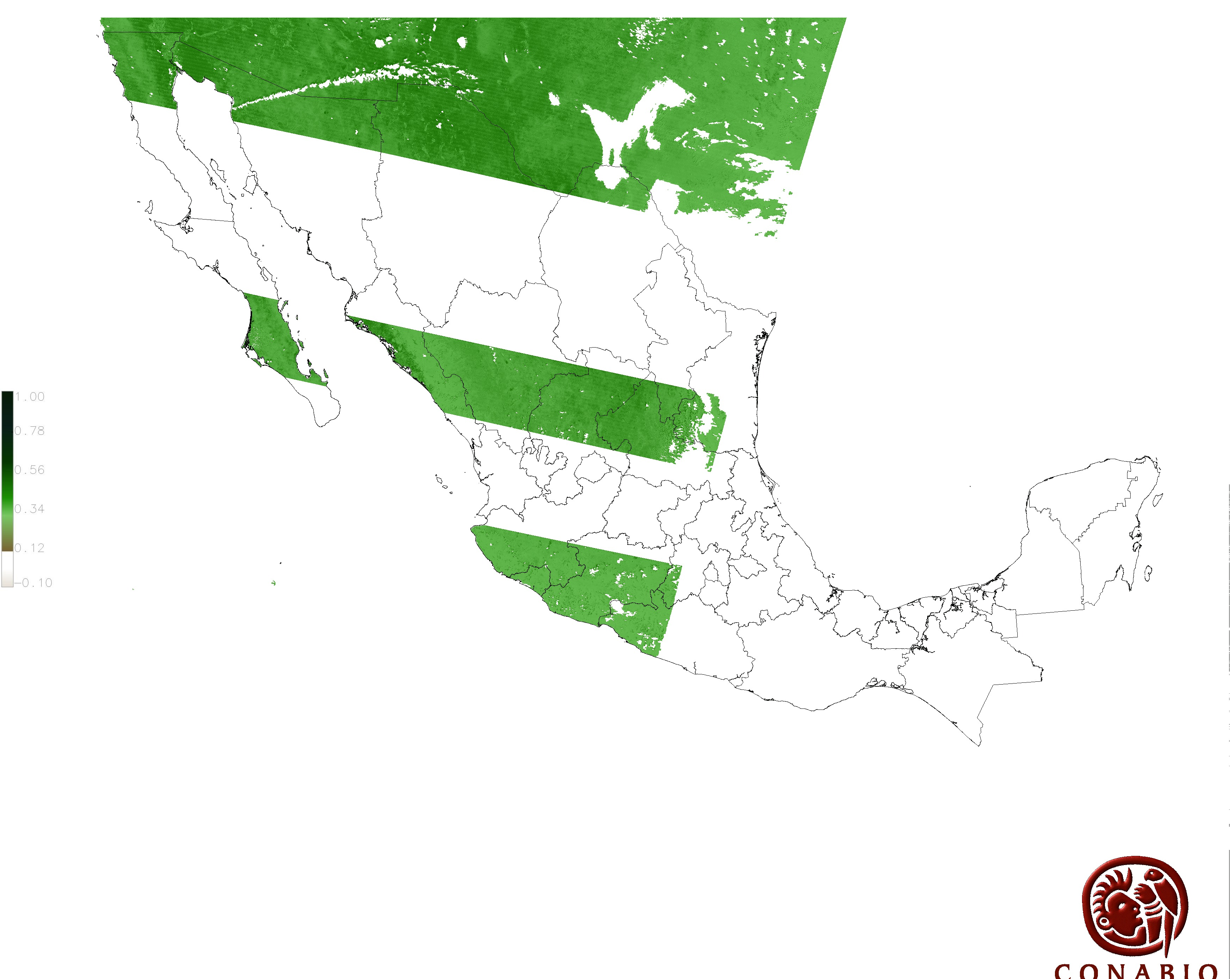 Los valores del índice van de -1 a 1, entre más cercano al valor 1 la vegetación presenta mayor vigor. Los índices de vegetación son utilizados para conocer el comportamiento de la vegetación tanto espacial como temporal. |
