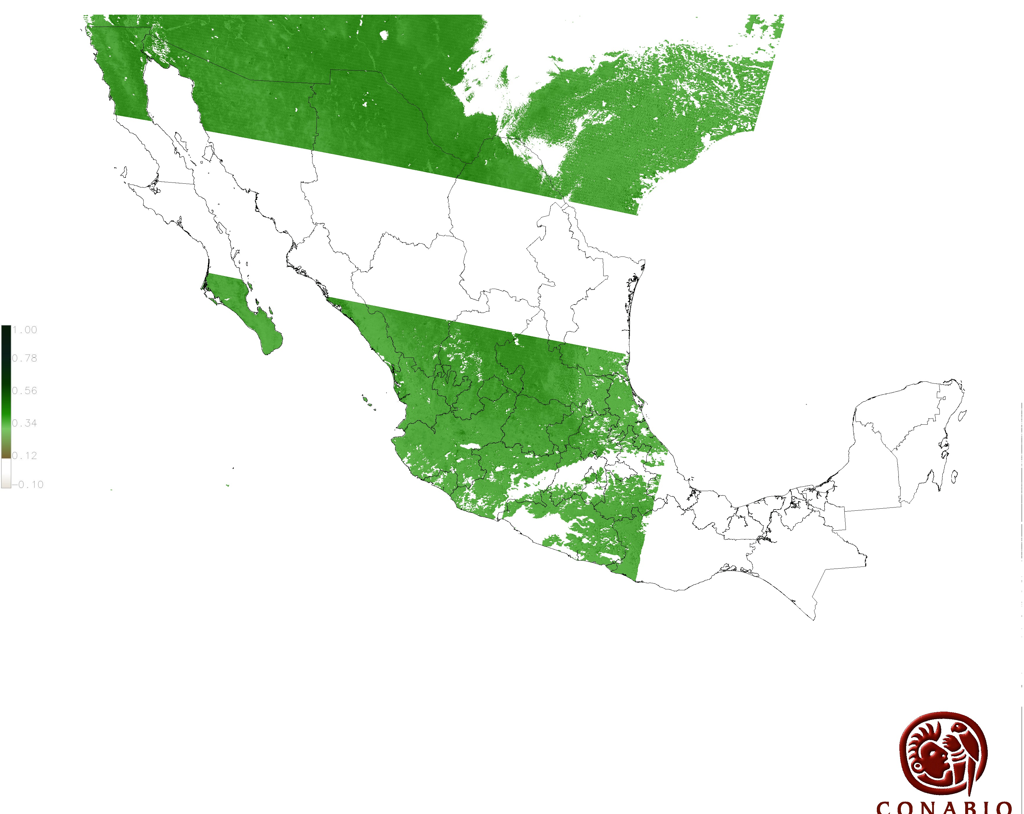 Los valores del índice van de -1 a 1, entre más cercano al valor 1 la vegetación presenta mayor vigor. Los índices de vegetación son utilizados para conocer el comportamiento de la vegetación tanto espacial como temporal. |