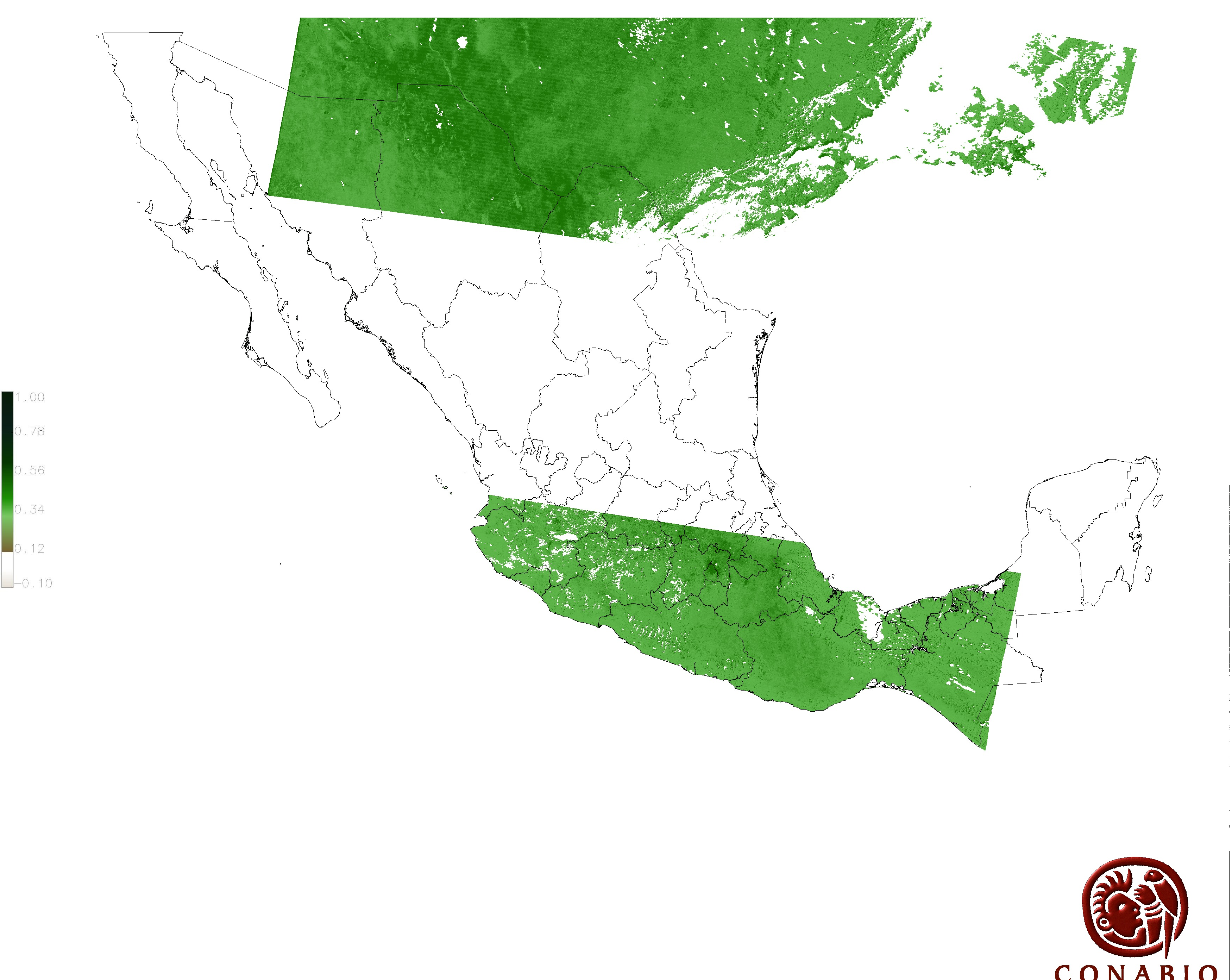 Los valores del índice van de -1 a 1, entre más cercano al valor 1 la vegetación presenta mayor vigor. Los índices de vegetación son utilizados para conocer el comportamiento de la vegetación tanto espacial como temporal. |