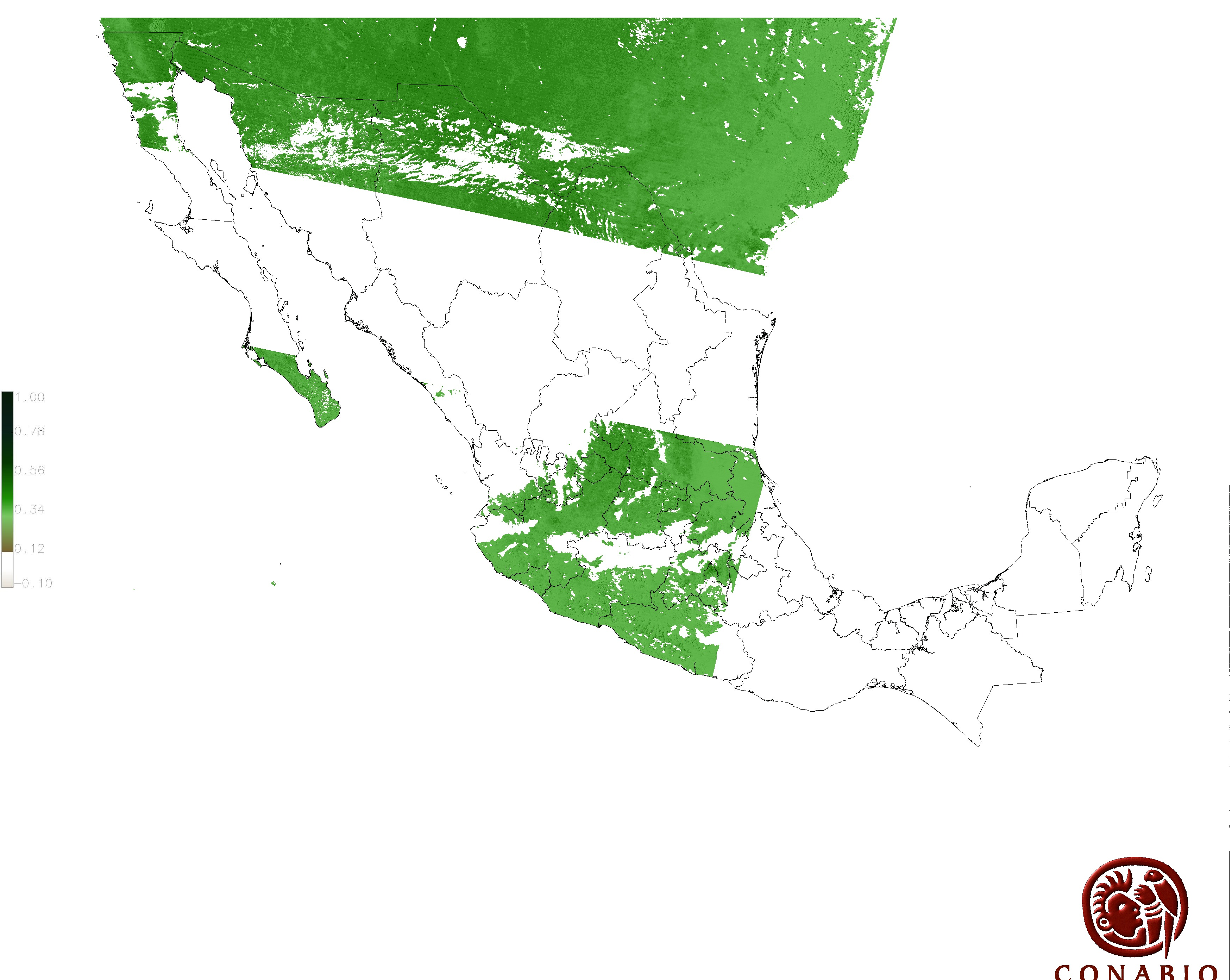 Los valores del índice van de -1 a 1, entre más cercano al valor 1 la vegetación presenta mayor vigor. Los índices de vegetación son utilizados para conocer el comportamiento de la vegetación tanto espacial como temporal. |