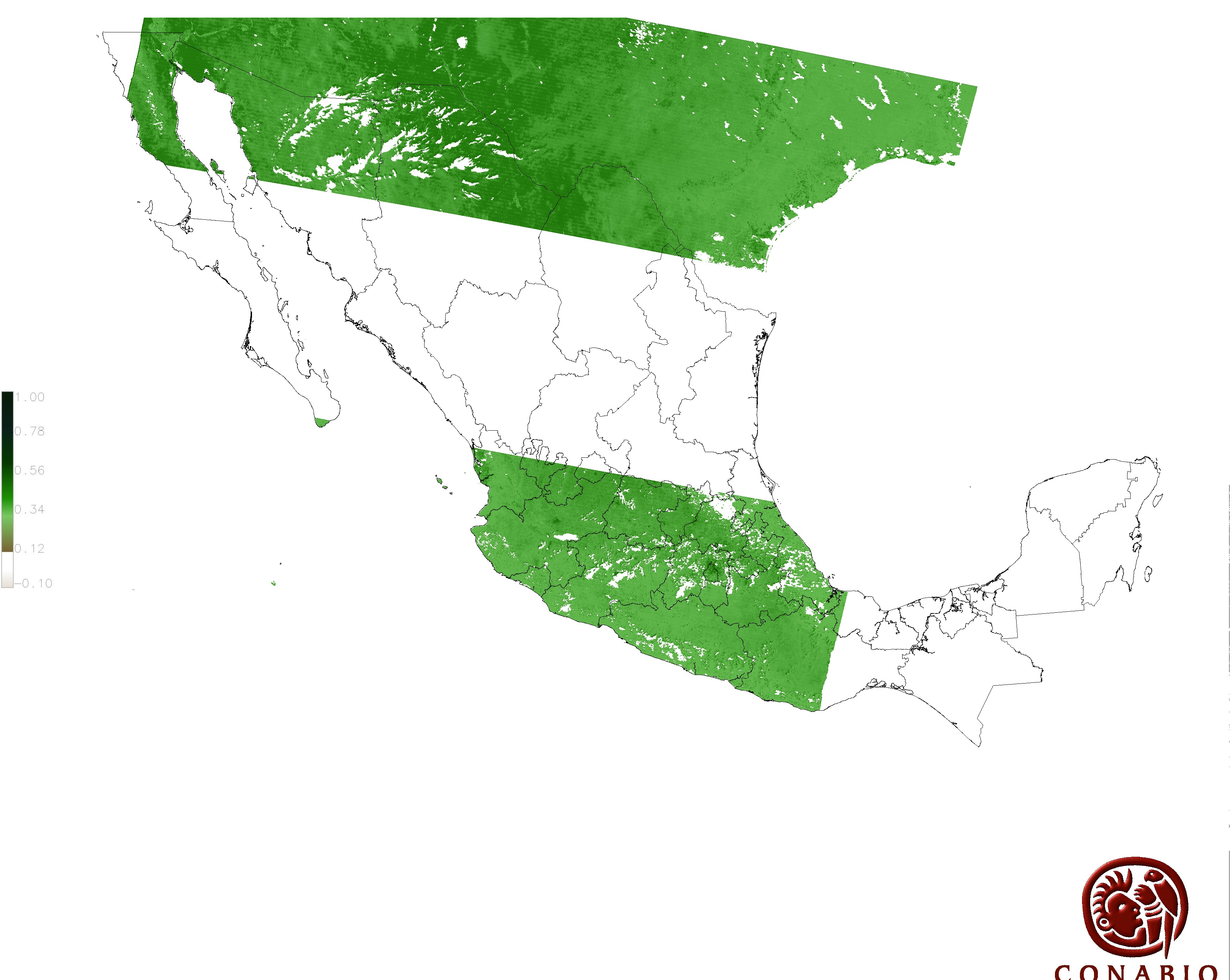 Los valores del índice van de -1 a 1, entre más cercano al valor 1 la vegetación presenta mayor vigor. Los índices de vegetación son utilizados para conocer el comportamiento de la vegetación tanto espacial como temporal. |