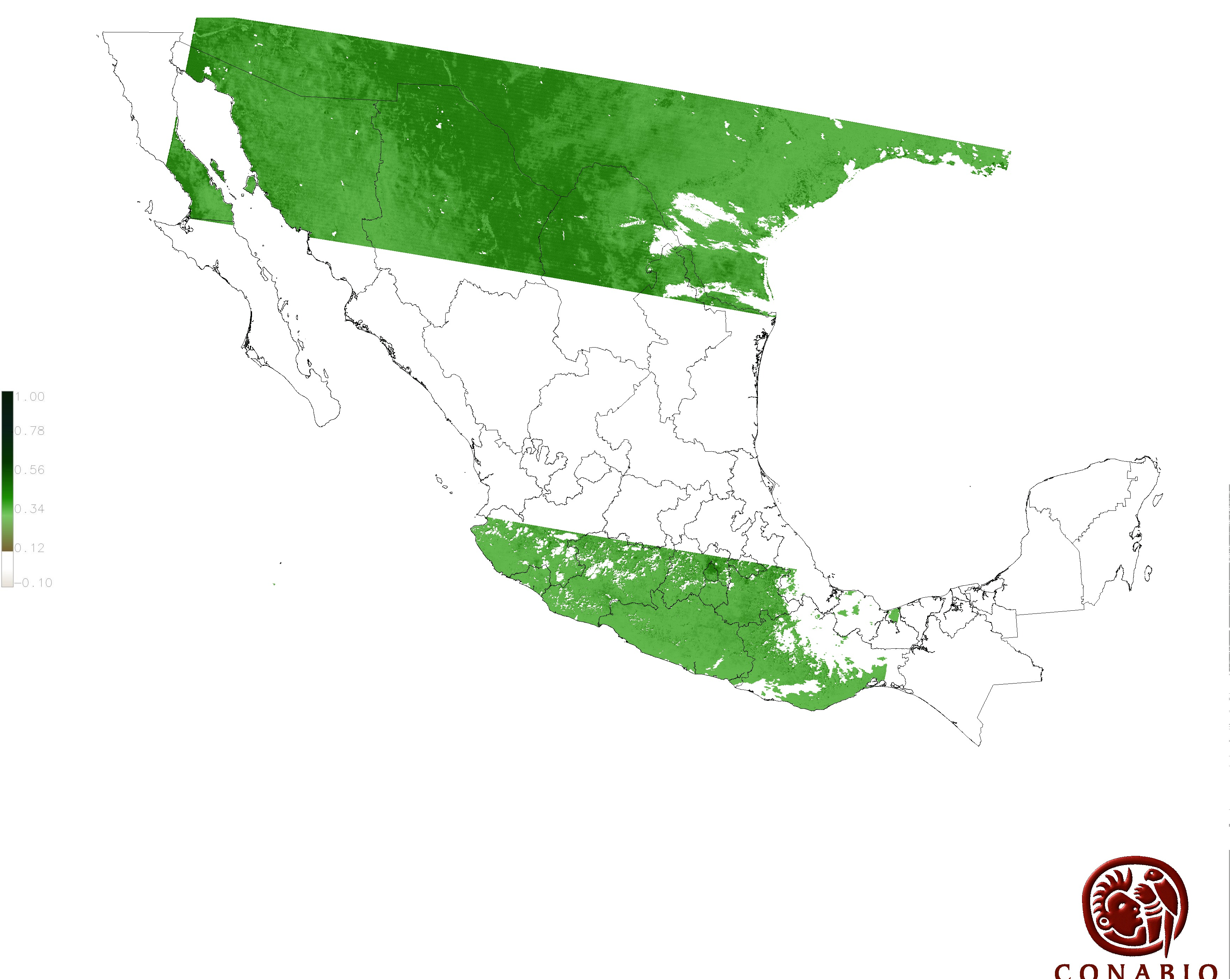 Los valores del índice van de -1 a 1, entre más cercano al valor 1 la vegetación presenta mayor vigor. Los índices de vegetación son utilizados para conocer el comportamiento de la vegetación tanto espacial como temporal. |