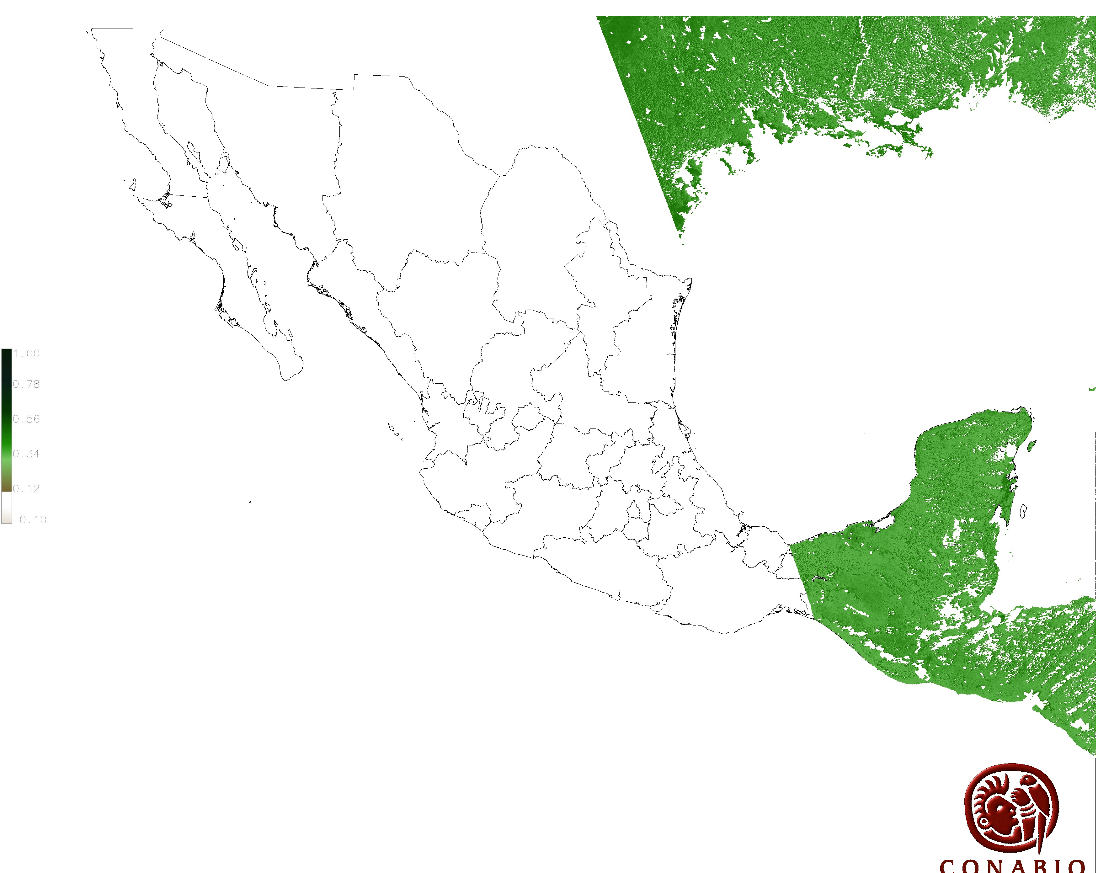 Los valores del índice van de -1 a 1, entre más cercano al valor 1 la vegetación presenta mayor vigor. Los índices de vegetación son utilizados para conocer el comportamiento de la vegetación tanto espacial como temporal. |