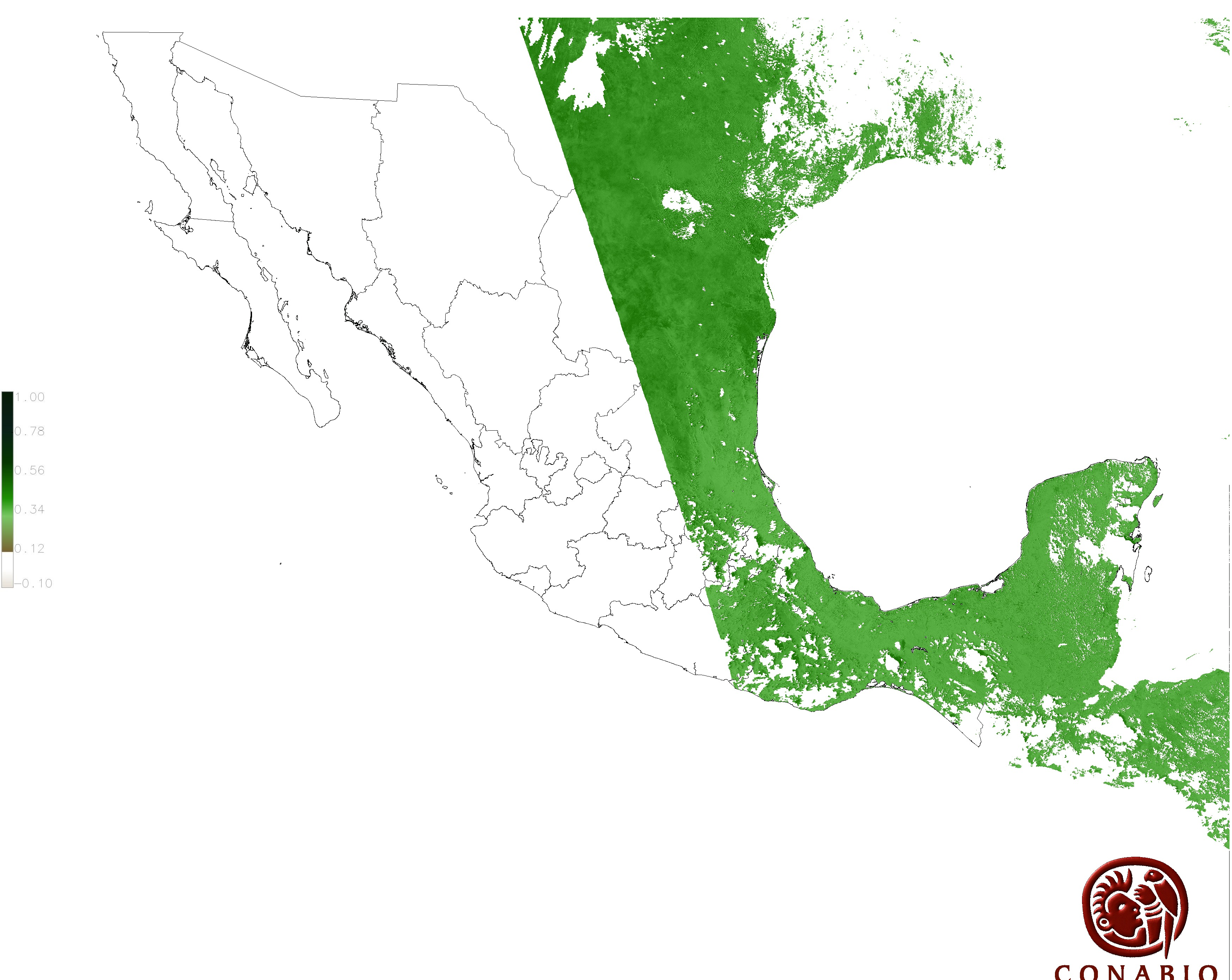 Los valores del índice van de -1 a 1, entre más cercano al valor 1 la vegetación presenta mayor vigor. Los índices de vegetación son utilizados para conocer el comportamiento de la vegetación tanto espacial como temporal. |