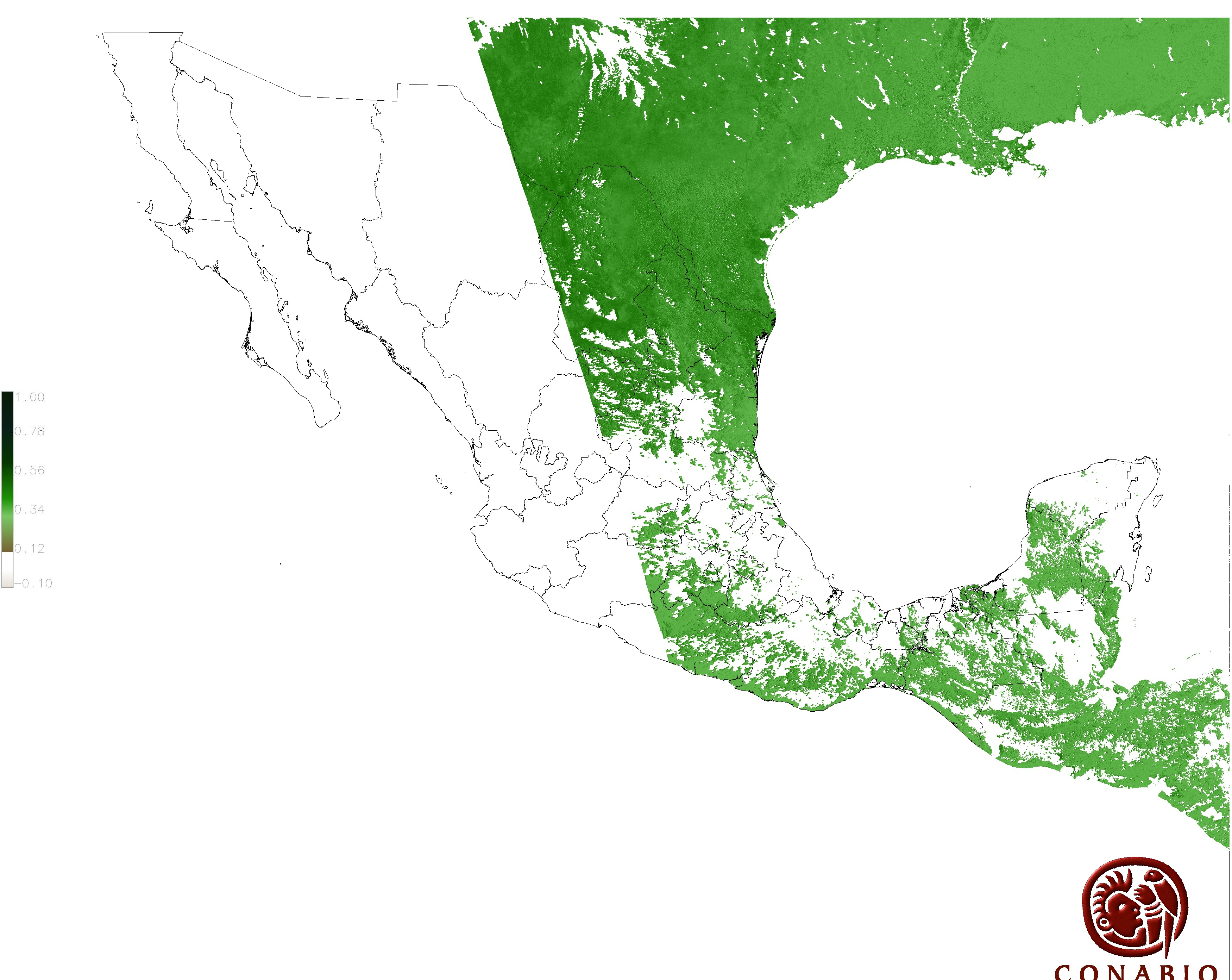 Los valores del índice van de -1 a 1, entre más cercano al valor 1 la vegetación presenta mayor vigor. Los índices de vegetación son utilizados para conocer el comportamiento de la vegetación tanto espacial como temporal. |