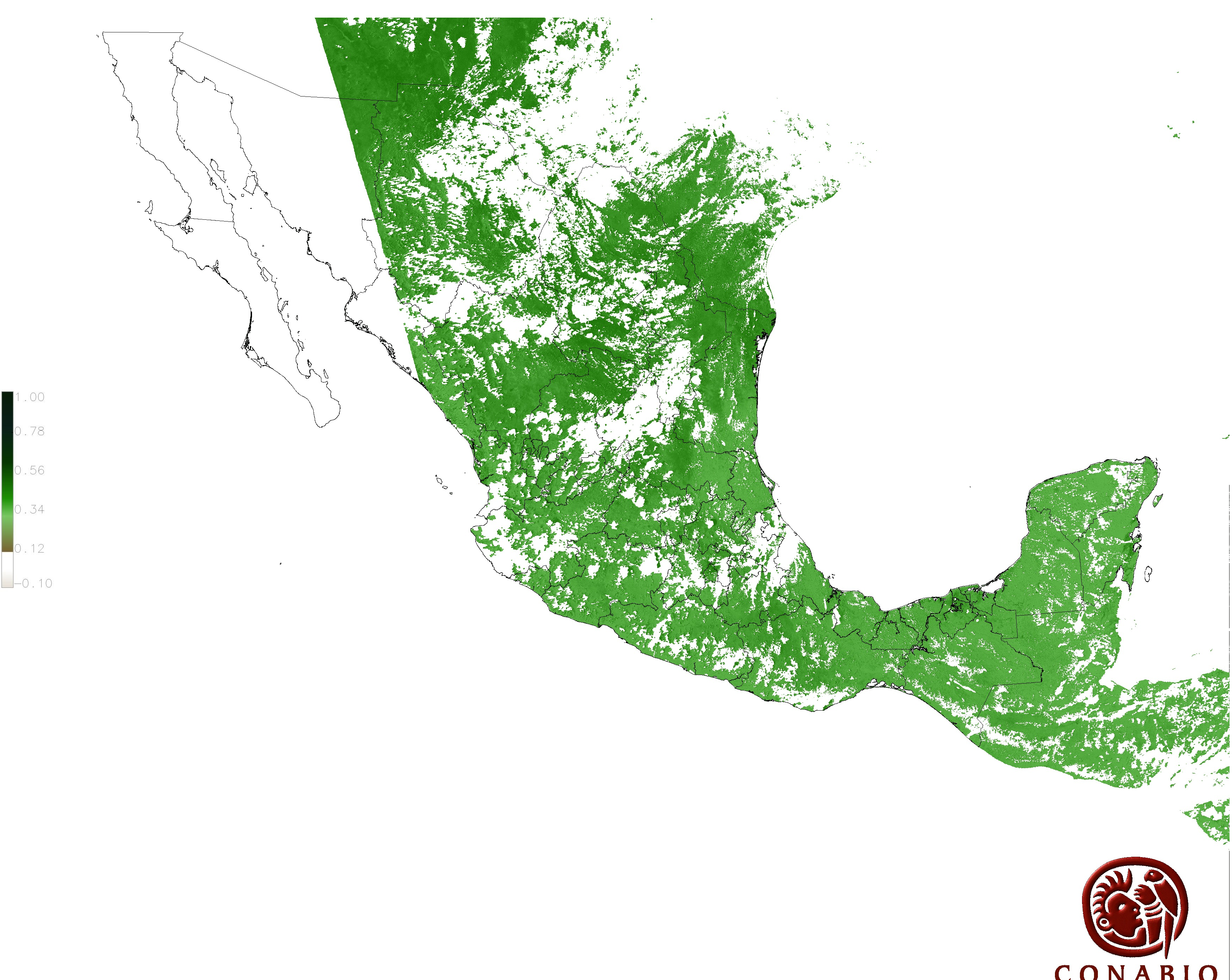 Los valores del índice van de -1 a 1, entre más cercano al valor 1 la vegetación presenta mayor vigor. Los índices de vegetación son utilizados para conocer el comportamiento de la vegetación tanto espacial como temporal. |