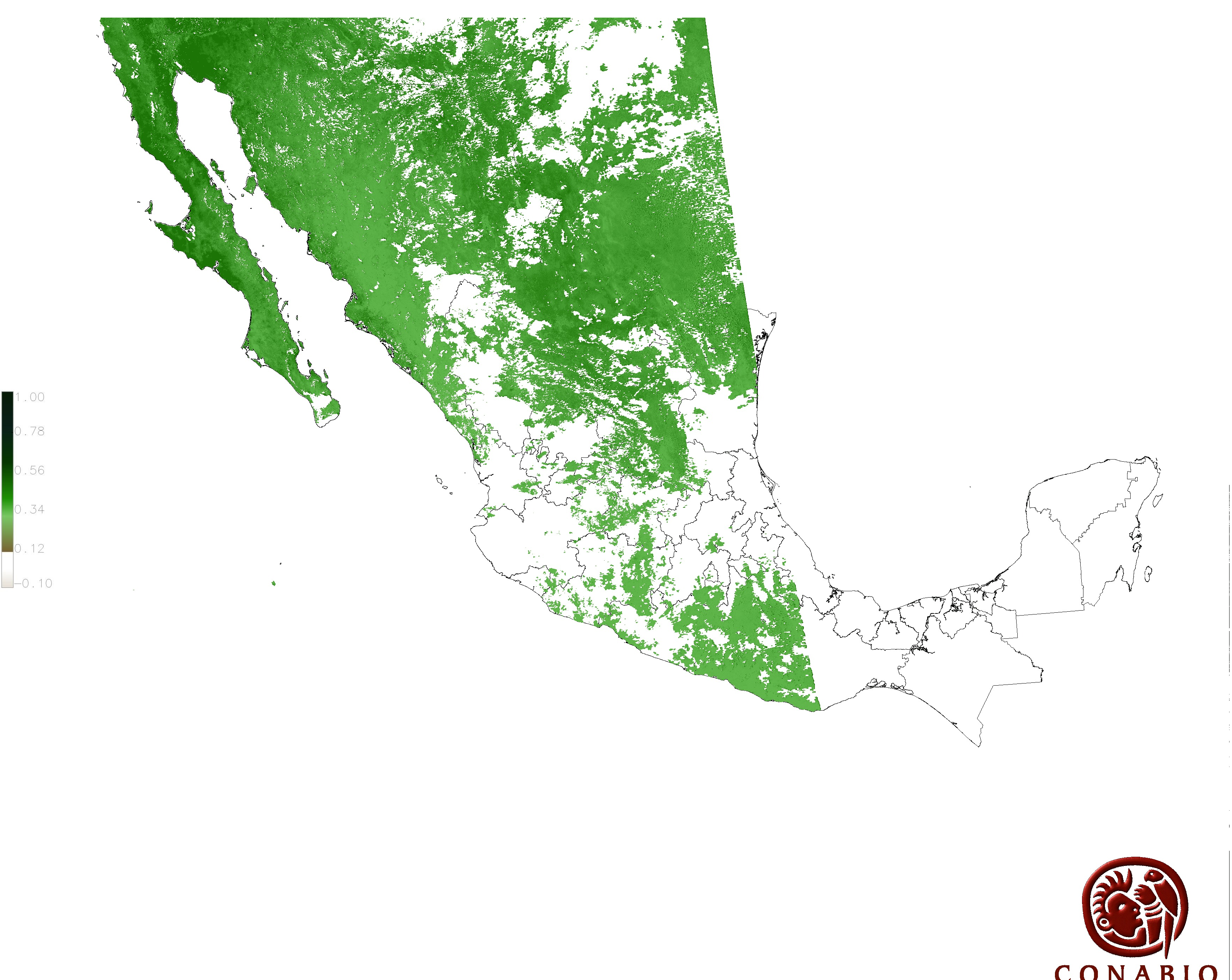 Los valores del índice van de -1 a 1, entre más cercano al valor 1 la vegetación presenta mayor vigor. Los índices de vegetación son utilizados para conocer el comportamiento de la vegetación tanto espacial como temporal. |