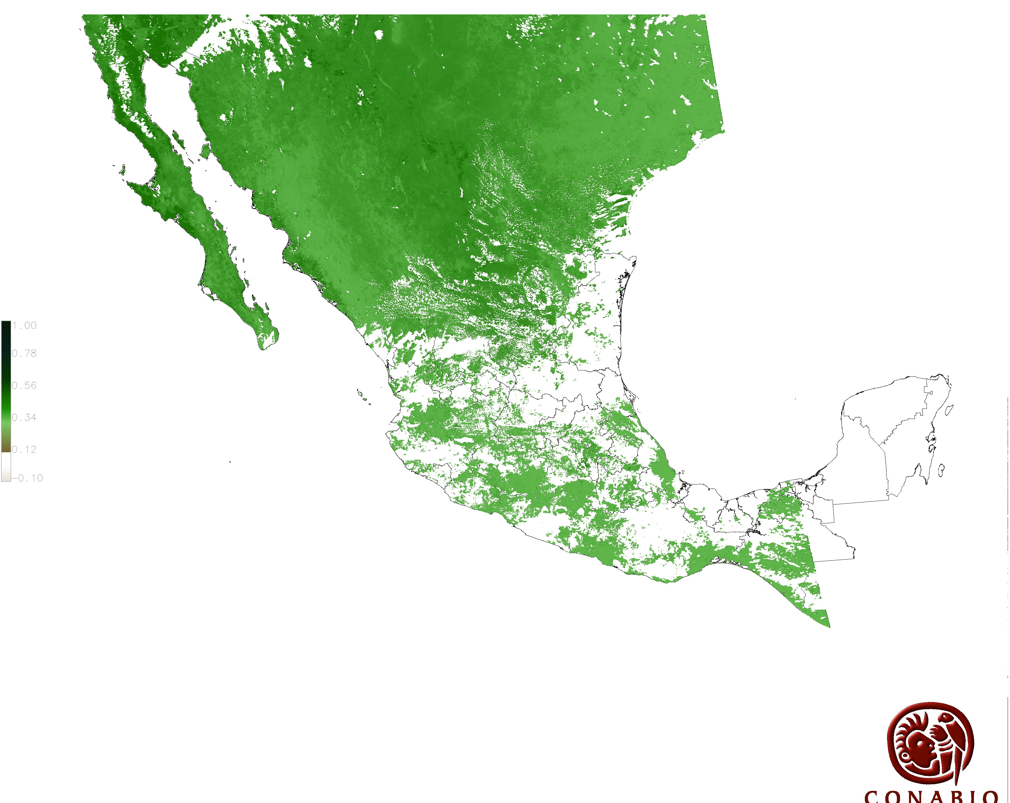 Los valores del índice van de -1 a 1, entre más cercano al valor 1 la vegetación presenta mayor vigor. Los índices de vegetación son utilizados para conocer el comportamiento de la vegetación tanto espacial como temporal. |