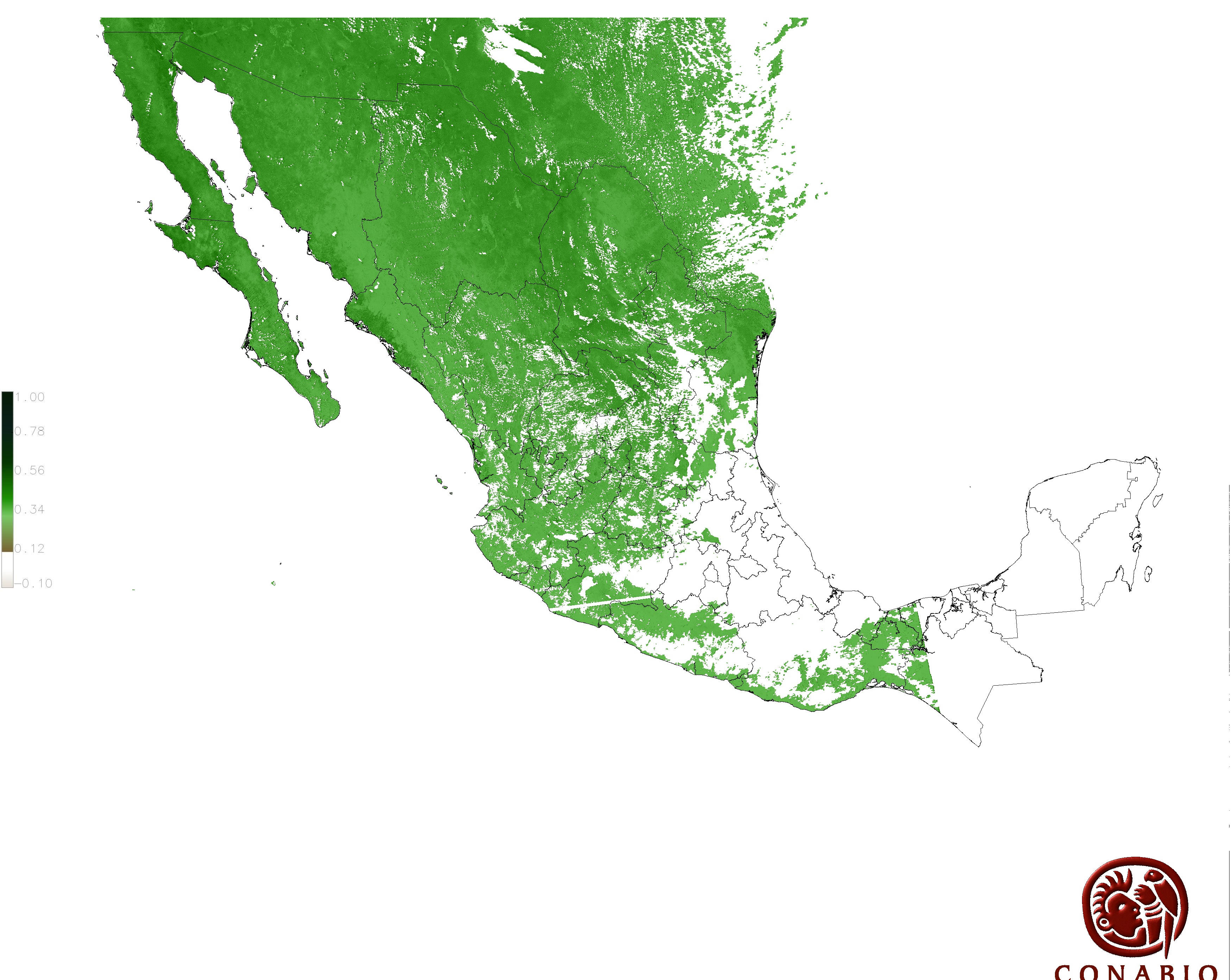 Los valores del índice van de -1 a 1, entre más cercano al valor 1 la vegetación presenta mayor vigor. Los índices de vegetación son utilizados para conocer el comportamiento de la vegetación tanto espacial como temporal. |