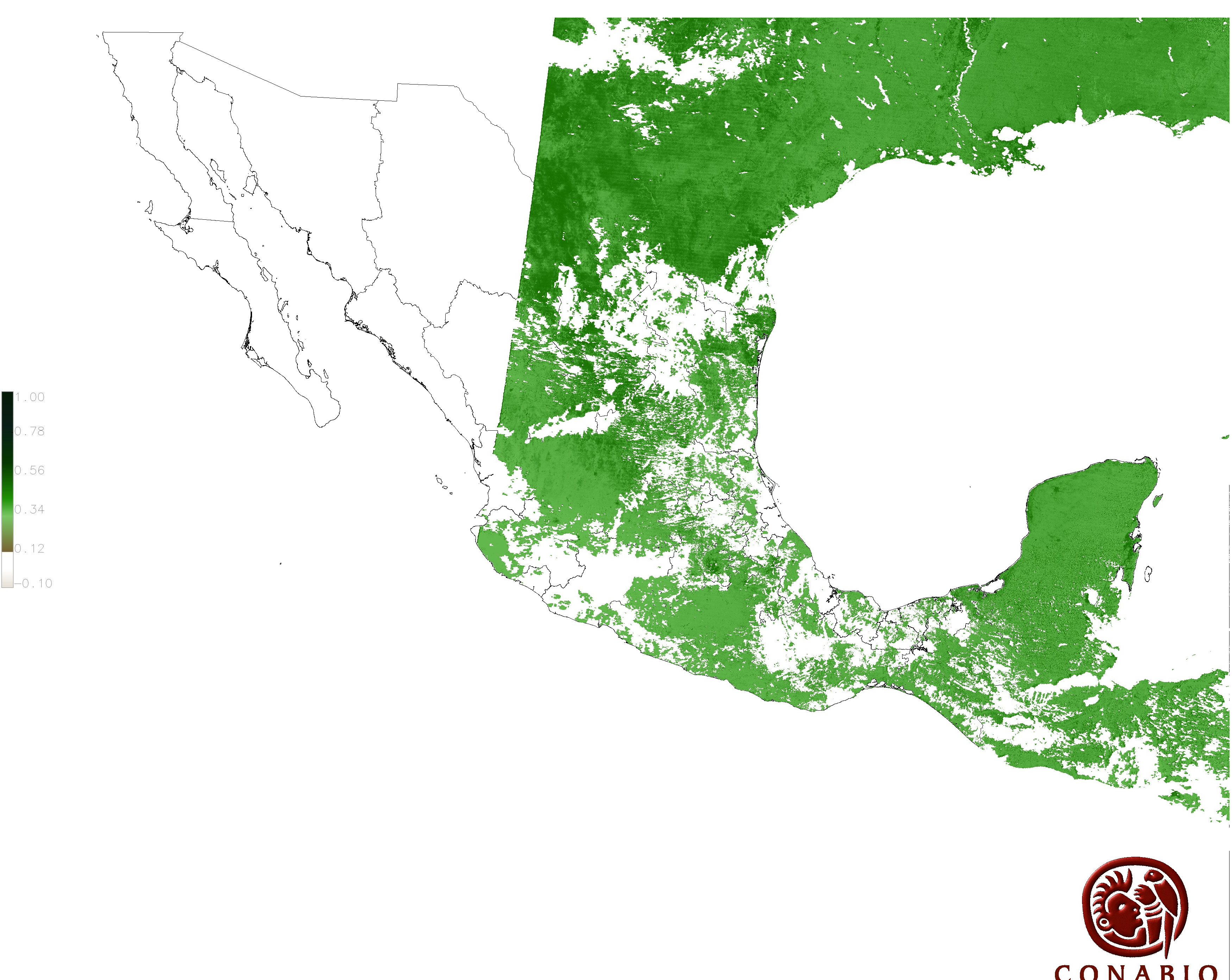 Los valores del índice van de -1 a 1, entre más cercano al valor 1 la vegetación presenta mayor vigor. Los índices de vegetación son utilizados para conocer el comportamiento de la vegetación tanto espacial como temporal. |