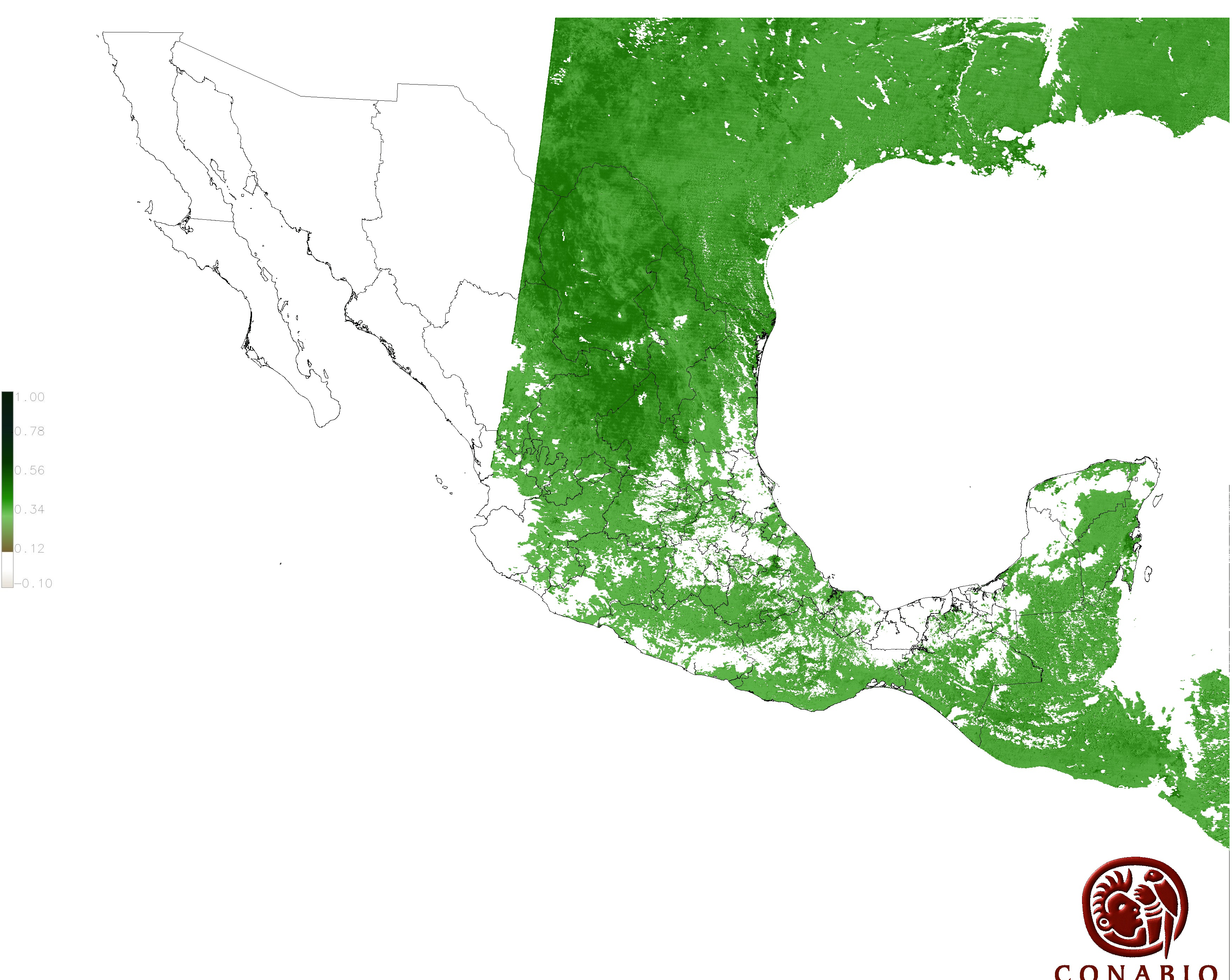 Los valores del índice van de -1 a 1, entre más cercano al valor 1 la vegetación presenta mayor vigor. Los índices de vegetación son utilizados para conocer el comportamiento de la vegetación tanto espacial como temporal. |