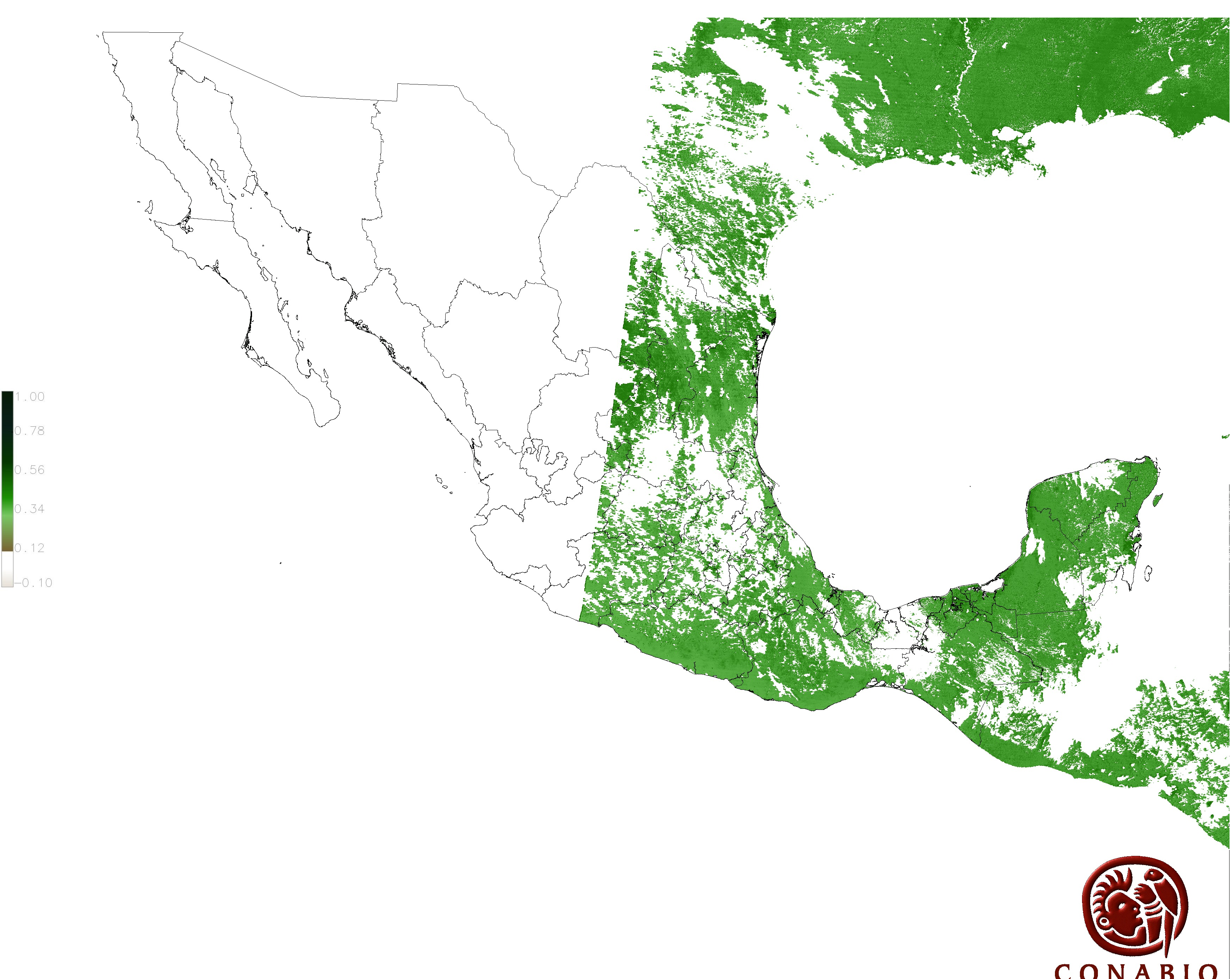 Los valores del índice van de -1 a 1, entre más cercano al valor 1 la vegetación presenta mayor vigor. Los índices de vegetación son utilizados para conocer el comportamiento de la vegetación tanto espacial como temporal. |