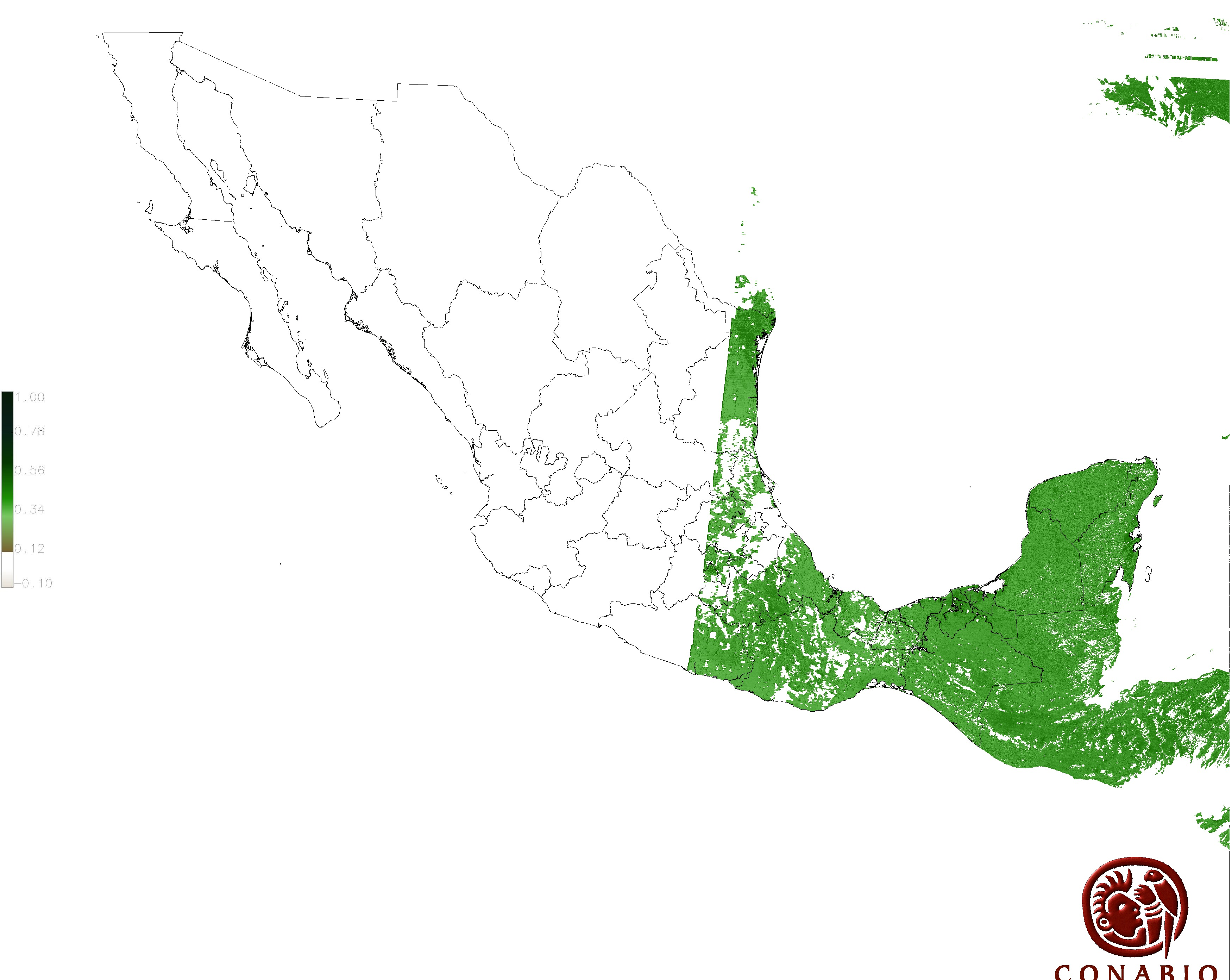 Los valores del índice van de -1 a 1, entre más cercano al valor 1 la vegetación presenta mayor vigor. Los índices de vegetación son utilizados para conocer el comportamiento de la vegetación tanto espacial como temporal. |