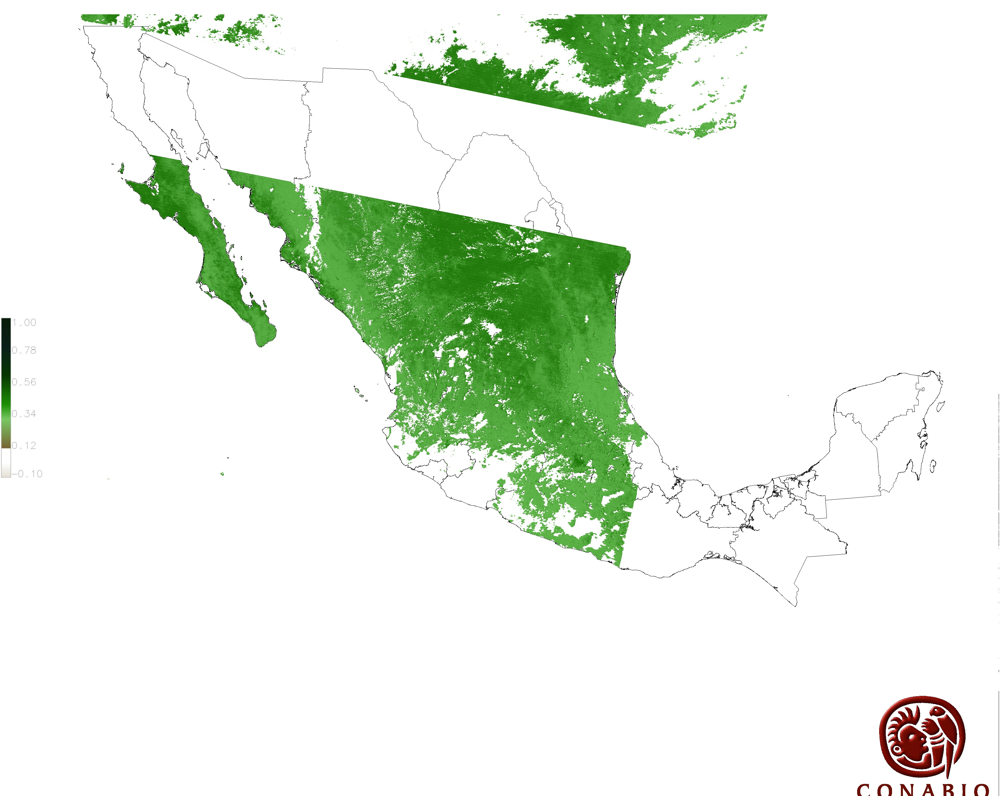 Los valores del índice van de -1 a 1, entre más cercano al valor 1 la vegetación presenta mayor vigor. Los índices de vegetación son utilizados para conocer el comportamiento de la vegetación tanto espacial como temporal. |