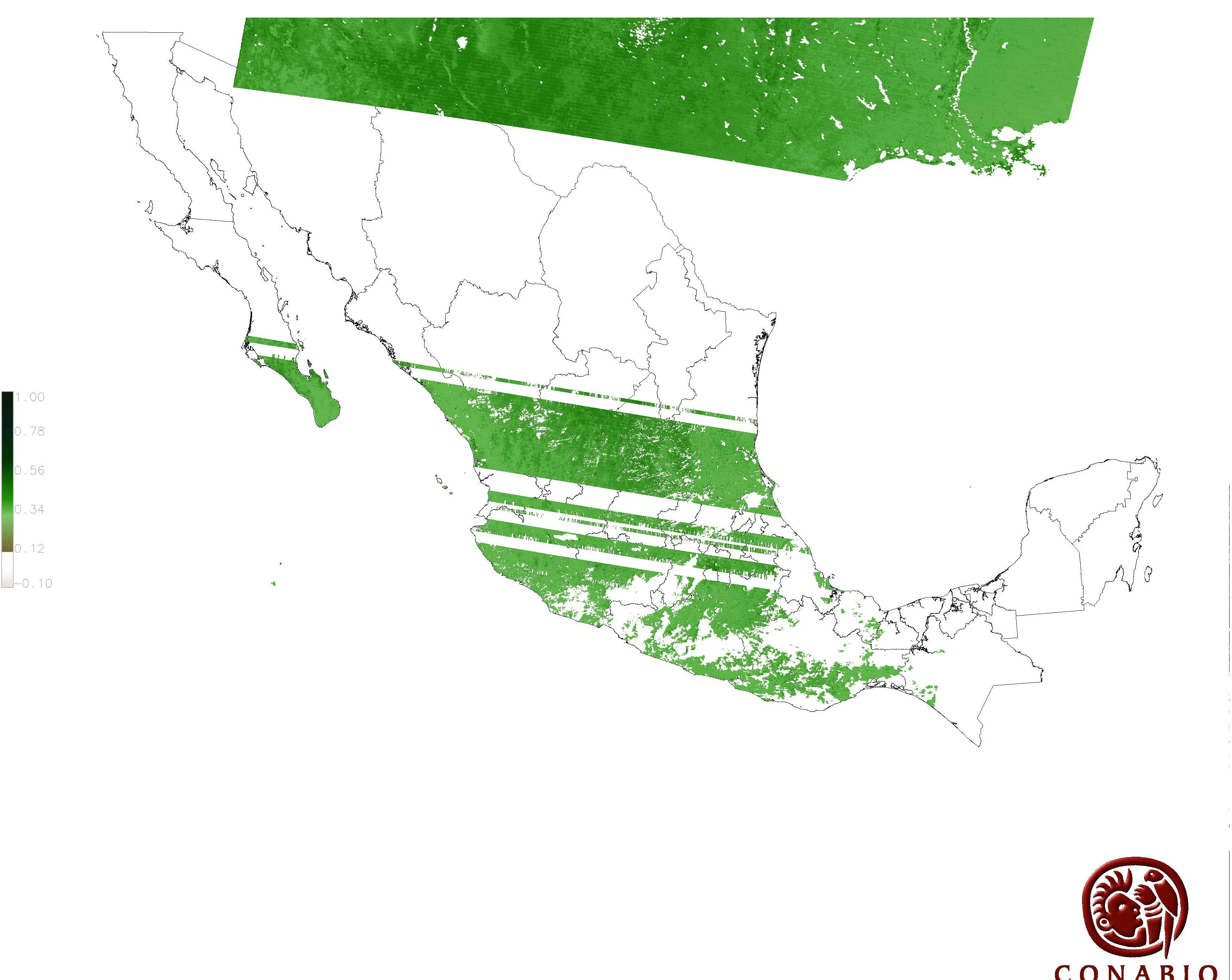 Nubosidad en el terreno:6% Nubosidad sobre México:10% Datos nulos en la escena:0% Datos nulos sobre México:0% |