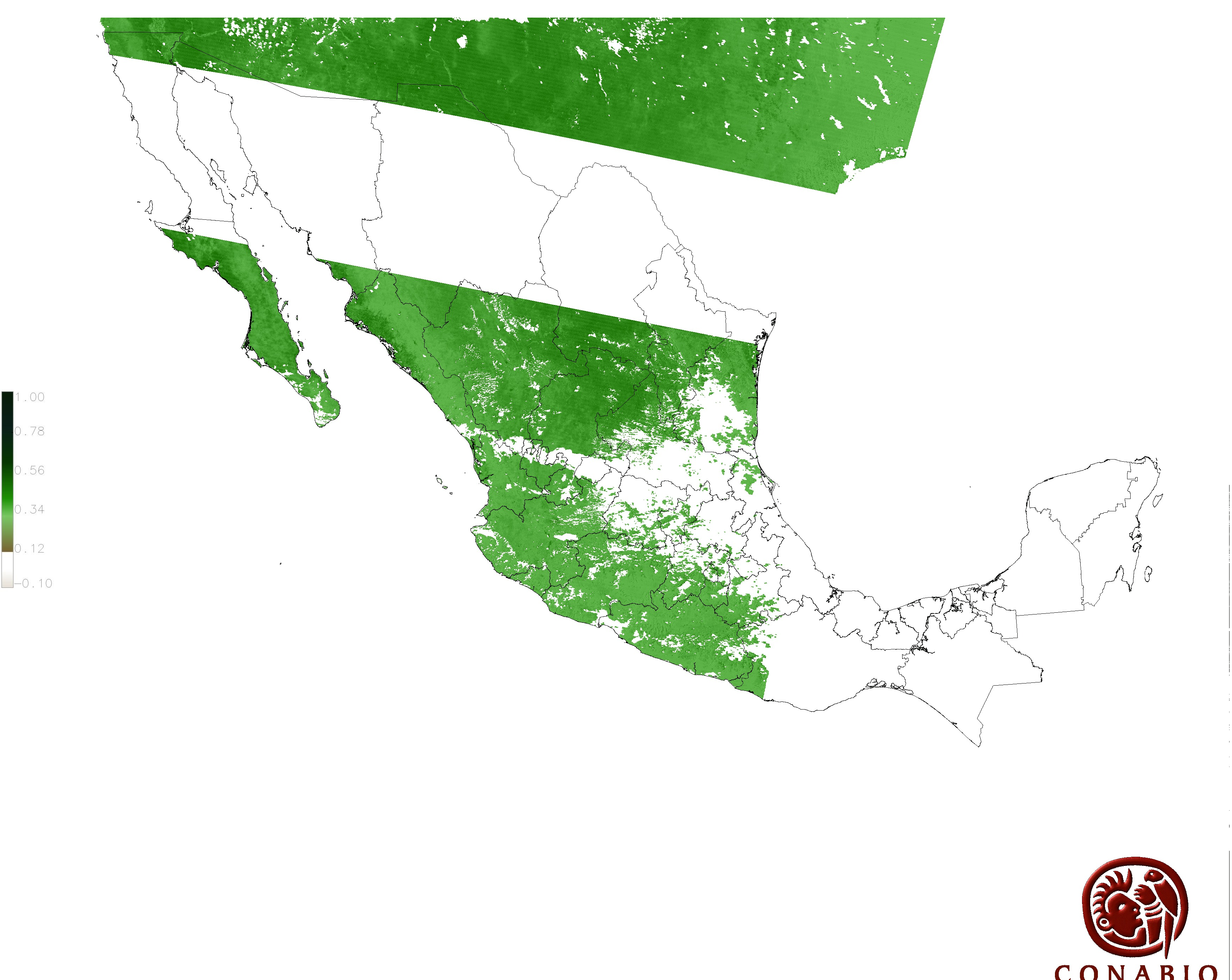 Los valores del índice van de -1 a 1, entre más cercano al valor 1 la vegetación presenta mayor vigor. Los índices de vegetación son utilizados para conocer el comportamiento de la vegetación tanto espacial como temporal. |