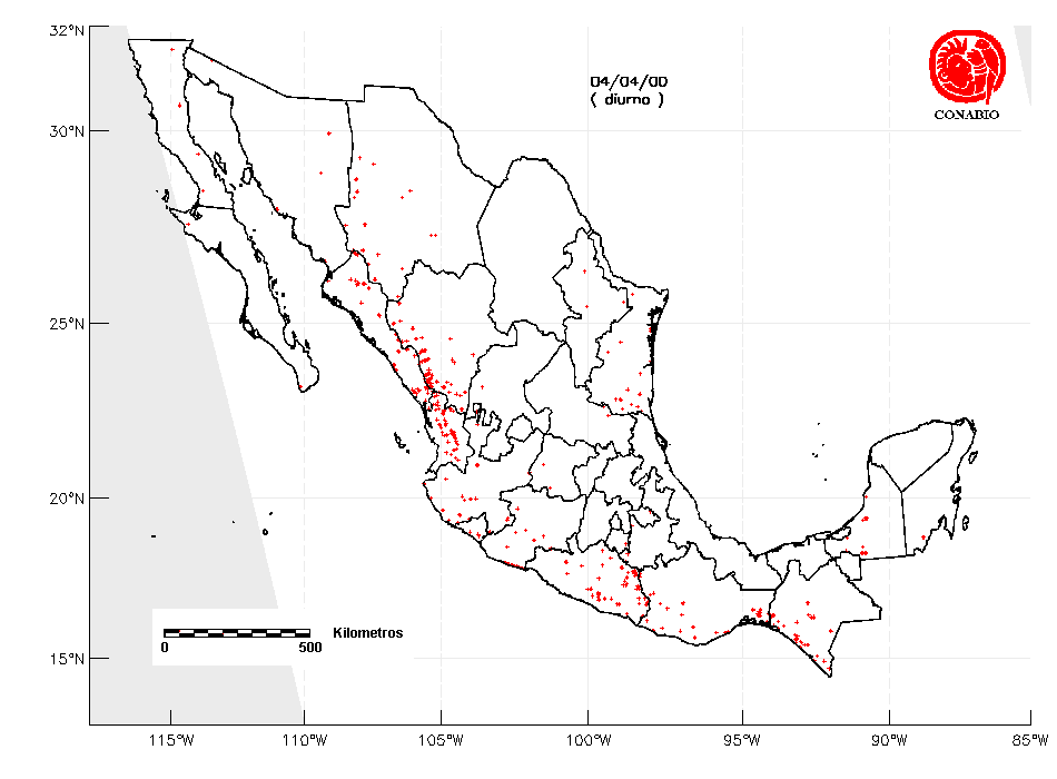 Se considera como punto de calor al elemento espacial mínimo de la imagen (pixel) que reporta una temperatura elevada. Para las imágenes diurnas la temperatura mínima considera es de 42°C y para las imágenes nocturnas es de 25°C. |
