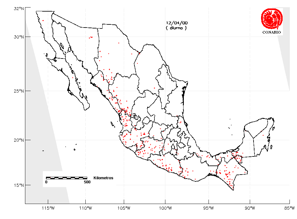 Se considera como punto de calor al elemento espacial mínimo de la imagen (pixel) que reporta una temperatura elevada. Para las imágenes diurnas la temperatura mínima considera es de 42°C y para las imágenes nocturnas es de 25°C. |