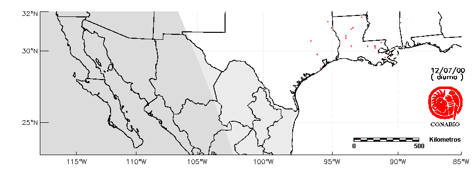 Se considera como punto de calor al elemento espacial mínimo de la imagen (pixel) que reporta una temperatura elevada. Para las imágenes diurnas la temperatura mínima considera es de 42°C y para las imágenes nocturnas es de 25°C. |