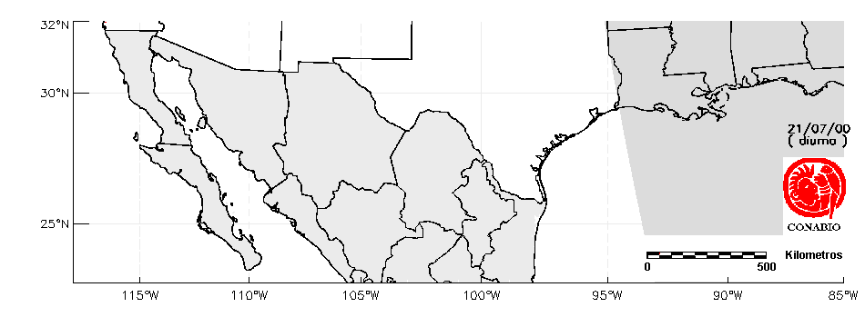 Se considera como punto de calor al elemento espacial mínimo de la imagen (pixel) que reporta una temperatura elevada. Para las imágenes diurnas la temperatura mínima considera es de 42°C y para las imágenes nocturnas es de 25°C. |