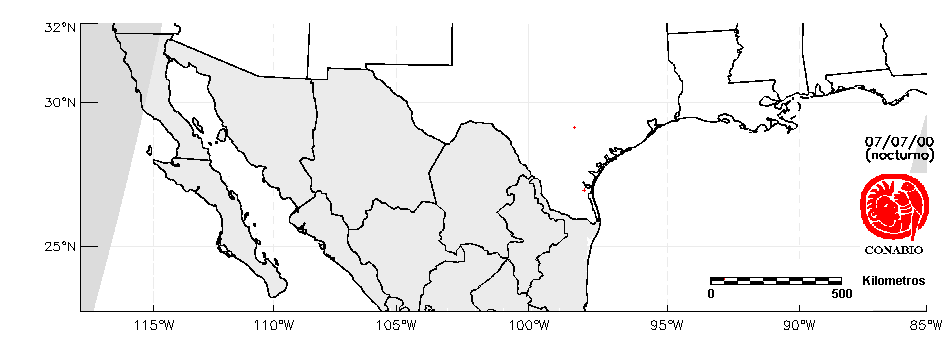 Se considera como punto de calor al elemento espacial mínimo de la imagen (pixel) que reporta una temperatura elevada. Para las imágenes diurnas la temperatura mínima considera es de 42°C y para las imágenes nocturnas es de 25°C. |