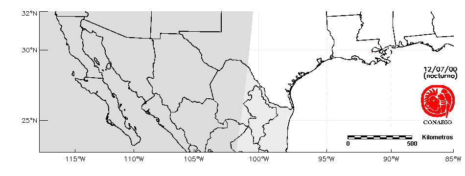 Se considera como punto de calor al elemento espacial mínimo de la imagen (pixel) que reporta una temperatura elevada. Para las imágenes diurnas la temperatura mínima considera es de 42°C y para las imágenes nocturnas es de 25°C. |
