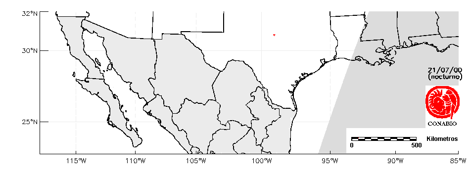 Se considera como punto de calor al elemento espacial mínimo de la imagen (pixel) que reporta una temperatura elevada. Para las imágenes diurnas la temperatura mínima considera es de 42°C y para las imágenes nocturnas es de 25°C. |
