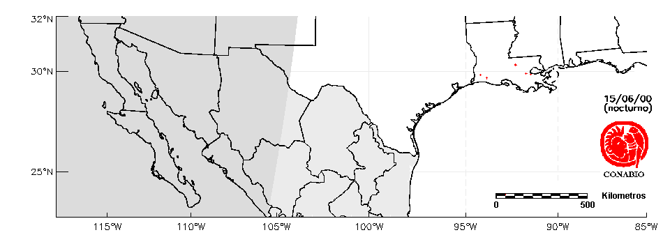 Se considera como punto de calor al elemento espacial mínimo de la imagen (pixel) que reporta una temperatura elevada. Para las imágenes diurnas la temperatura mínima considera es de 42°C y para las imágenes nocturnas es de 25°C. |