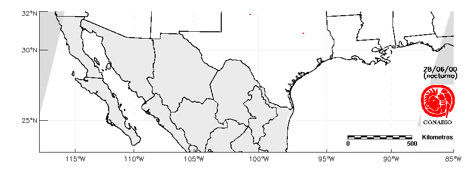 Se considera como punto de calor al elemento espacial mínimo de la imagen (pixel) que reporta una temperatura elevada. Para las imágenes diurnas la temperatura mínima considera es de 42°C y para las imágenes nocturnas es de 25°C. |
