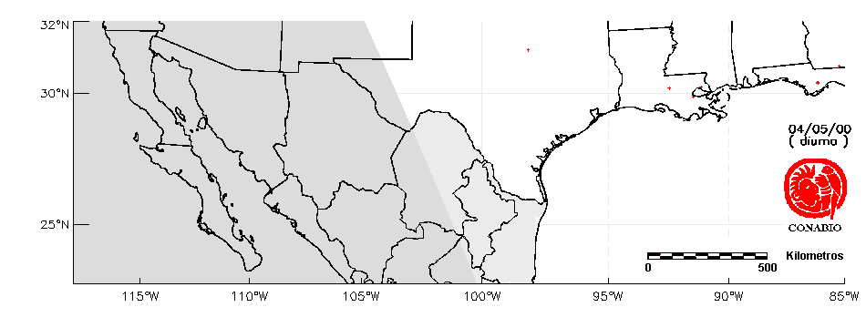 Se considera como punto de calor al elemento espacial mínimo de la imagen (pixel) que reporta una temperatura elevada. Para las imágenes diurnas la temperatura mínima considera es de 42°C y para las imágenes nocturnas es de 25°C. |