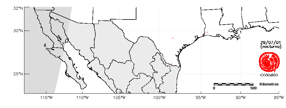 Se considera como punto de calor al elemento espacial mínimo de la imagen (pixel) que reporta una temperatura elevada. Para las imágenes diurnas la temperatura mínima considera es de 42°C y para las imágenes nocturnas es de 25°C. |