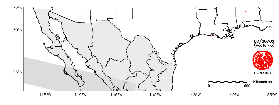 Se considera como punto de calor al elemento espacial mínimo de la imagen (pixel) que reporta una temperatura elevada. Para las imágenes diurnas la temperatura mínima considera es de 42°C y para las imágenes nocturnas es de 25°C. |
