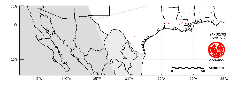 Se considera como punto de calor al elemento espacial mínimo de la imagen (pixel) que reporta una temperatura elevada. Para las imágenes diurnas la temperatura mínima considera es de 42°C y para las imágenes nocturnas es de 25°C. |