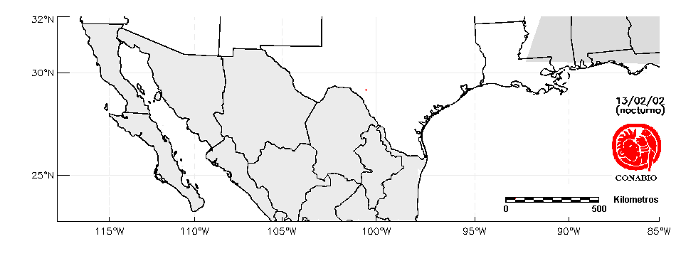 Se considera como punto de calor al elemento espacial mínimo de la imagen (pixel) que reporta una temperatura elevada. Para las imágenes diurnas la temperatura mínima considera es de 42°C y para las imágenes nocturnas es de 25°C. |