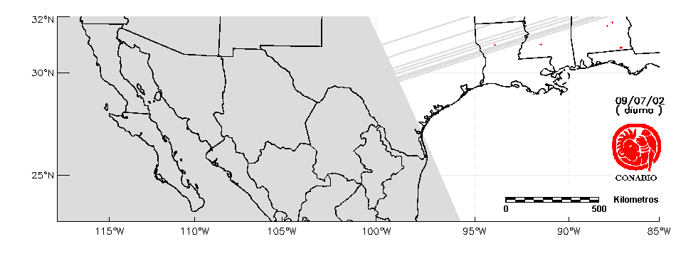 Se considera como punto de calor al elemento espacial mínimo de la imagen (pixel) que reporta una temperatura elevada. Para las imágenes diurnas la temperatura mínima considera es de 42°C y para las imágenes nocturnas es de 25°C. |