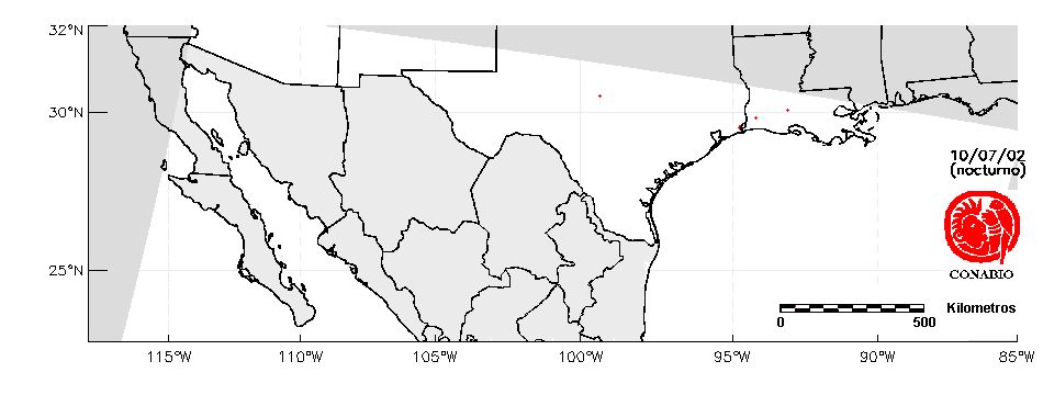 Se considera como punto de calor al elemento espacial mínimo de la imagen (pixel) que reporta una temperatura elevada. Para las imágenes diurnas la temperatura mínima considera es de 42°C y para las imágenes nocturnas es de 25°C. |
