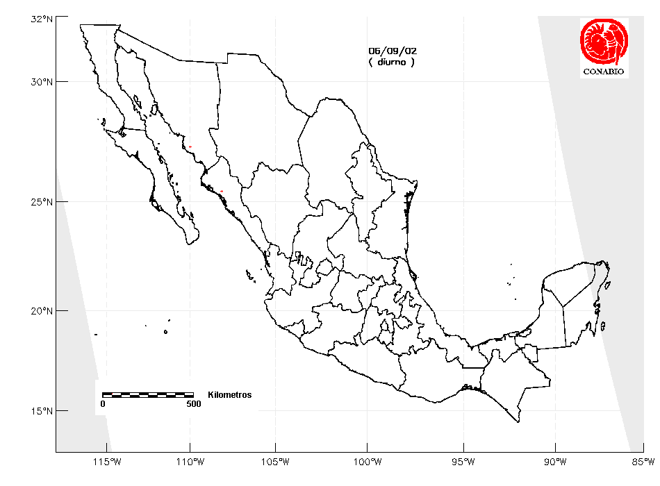 Se considera como punto de calor al elemento espacial mínimo de la imagen (pixel) que reporta una temperatura elevada. Para las imágenes diurnas la temperatura mínima considera es de 42°C y para las imágenes nocturnas es de 25°C. |