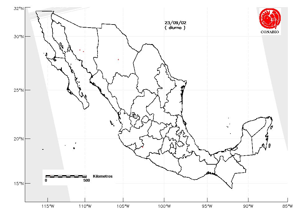 Se considera como punto de calor al elemento espacial mínimo de la imagen (pixel) que reporta una temperatura elevada. Para las imágenes diurnas la temperatura mínima considera es de 42°C y para las imágenes nocturnas es de 25°C. |