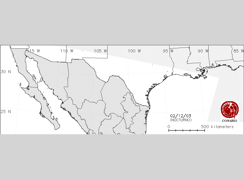 Se considera como punto de calor al elemento espacial mínimo de la imagen (pixel) que reporta una temperatura elevada. Para las imágenes diurnas la temperatura mínima considera es de 42 C y para las imágenes nocturnas es de 25 C. |